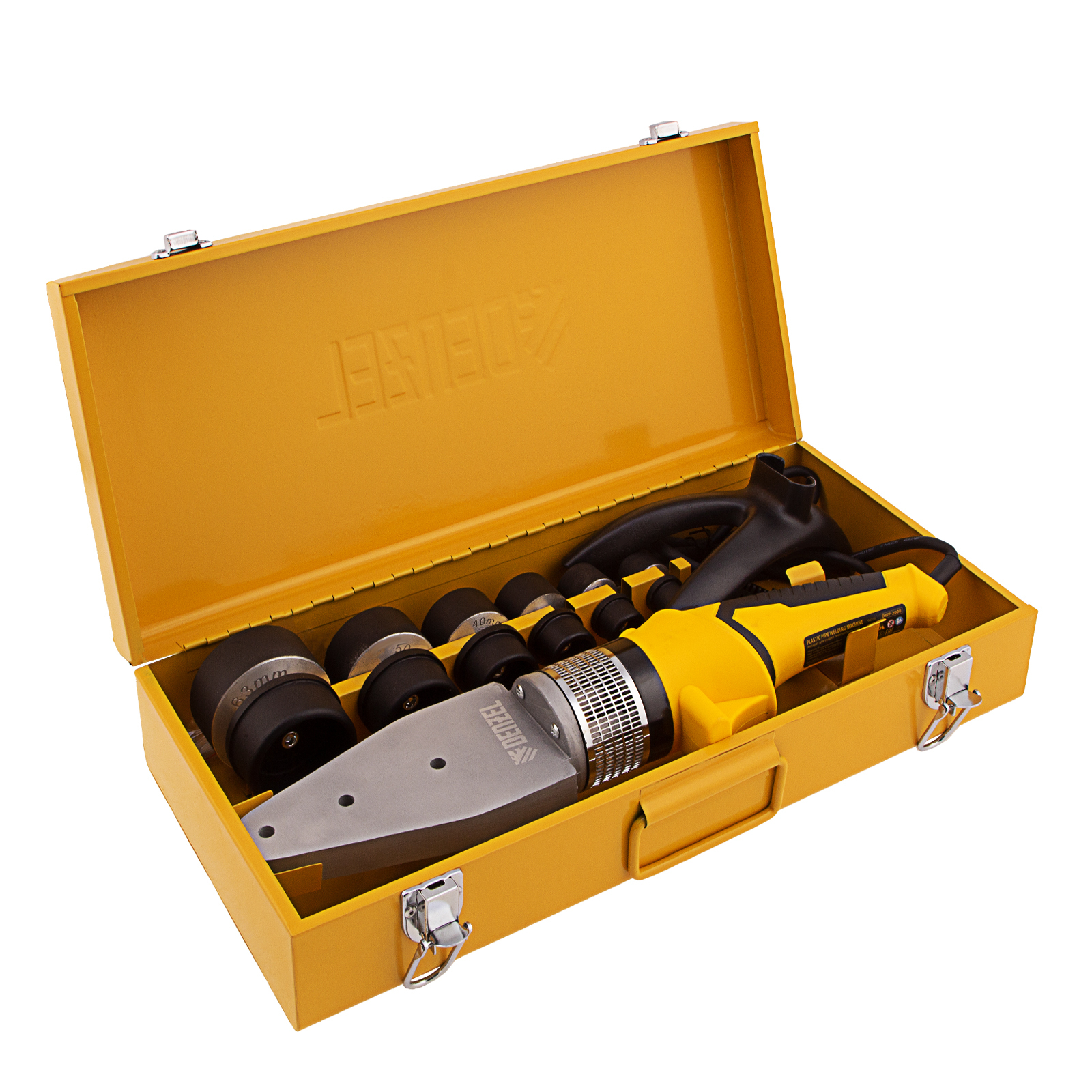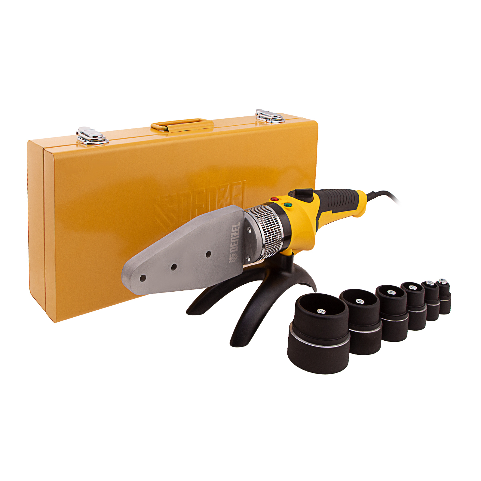 Аппарат для сварки пластиковых труб Denzel DWP-2000 X-PRO 94209 мощностью 2000 Вт, с максимальной температурой 300 ℃, с комплектом насадок диаметром 20-63 мм, предназначен для надежного соединения труб из полипропилена и полиэтилена в бытовых условиях. Мощности 2 кВт достаточно для монтирования систем водоснабжения, отопления и канализации в частных домах и квартирах. Два надежных ТЭНа обеспечивают температуру до 260-300 ℃, в зависимости от выбранного режима. Принцип действия аппарата сводится к нагреву и прочному соединению двух компонентов под давлением. В комплект поставки входят 6 сменных насадок-расходников, поэтому тратить ресурсы на их поиск не придется. Паять можно трубы диаметром 20, 25, 32, 40, 50 и 63 мм.