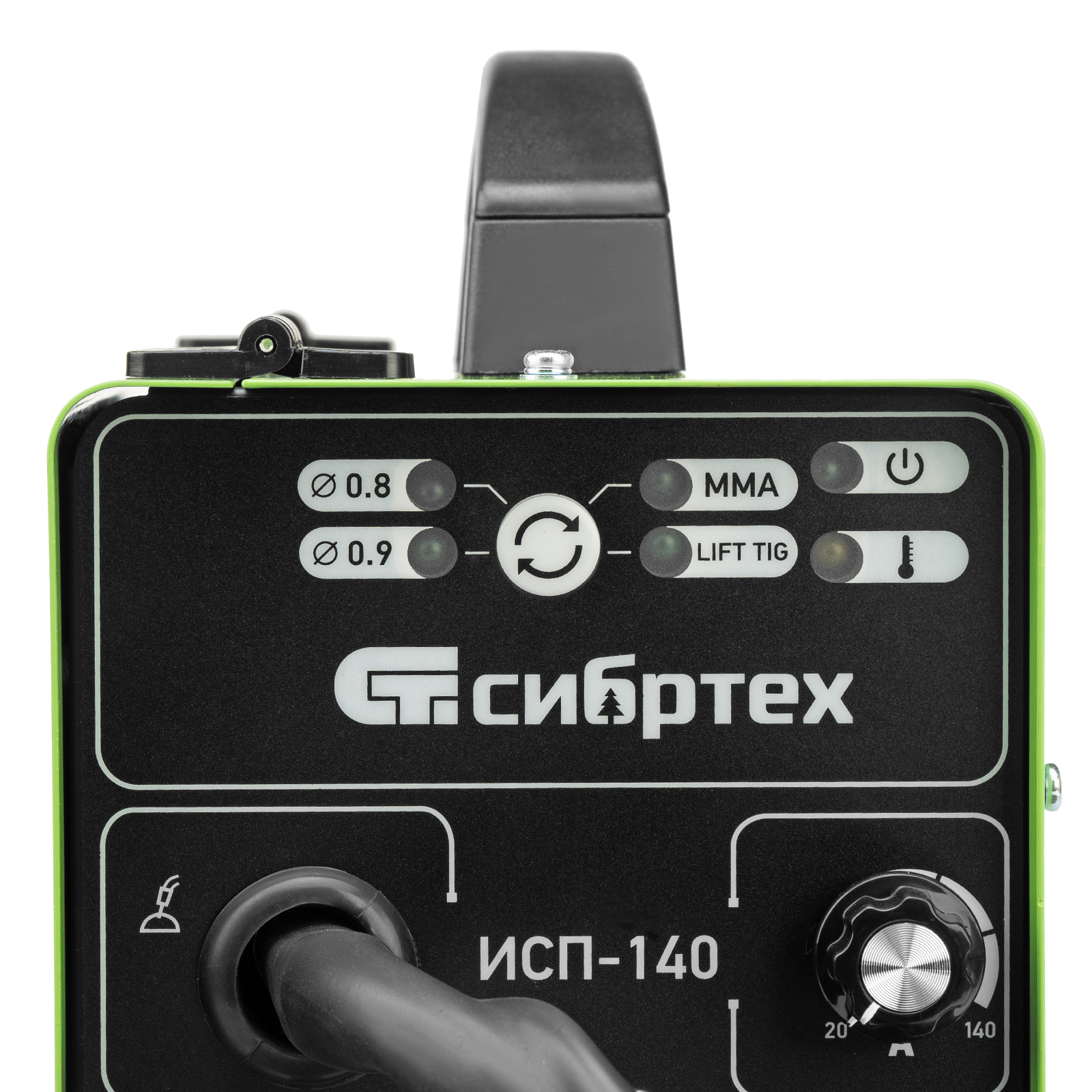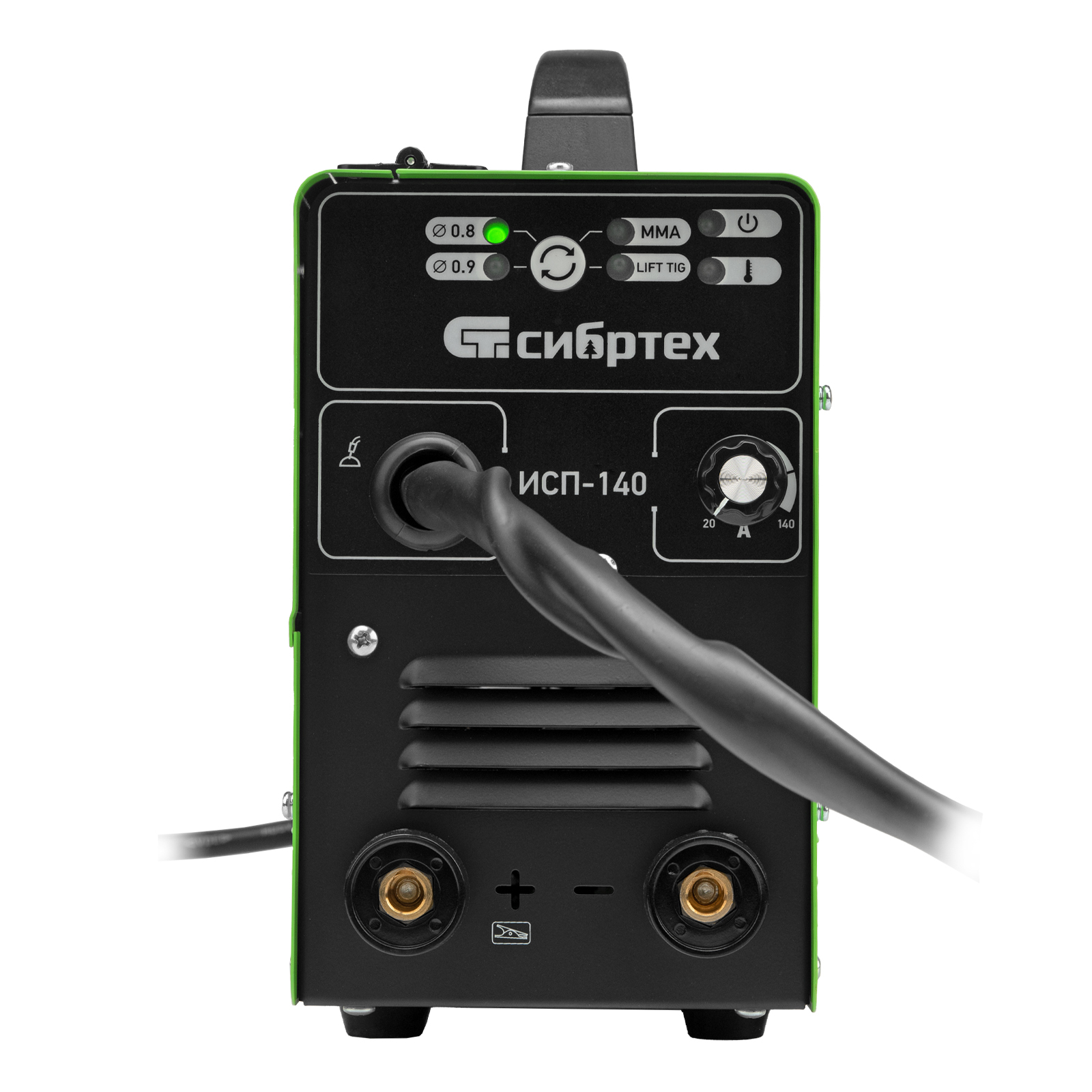 Инверторный аппарат полуавтоматической сварки Сибртех ИСП-140 94321 работает с максимальным сварочным током 140 А, время продолжительности включения составляет 60%. Аппарат позволяет работать в режимах MMA (сварка покрытым электродом диаметром до 4 мм), сварки флюсовой проволокой FCAW диаметром 0,8/0,9 мм без подачи газа и в режиме аргонодуговой сварки неплавящимся вольфрамовым электродом LIFT TIG (горелка в комплект не входит). Применение передовой инверторной технологии IGBT обеспечивает стабильный постоянный сварочный ток на выходе. Аппарат подходит для профессионального использования.