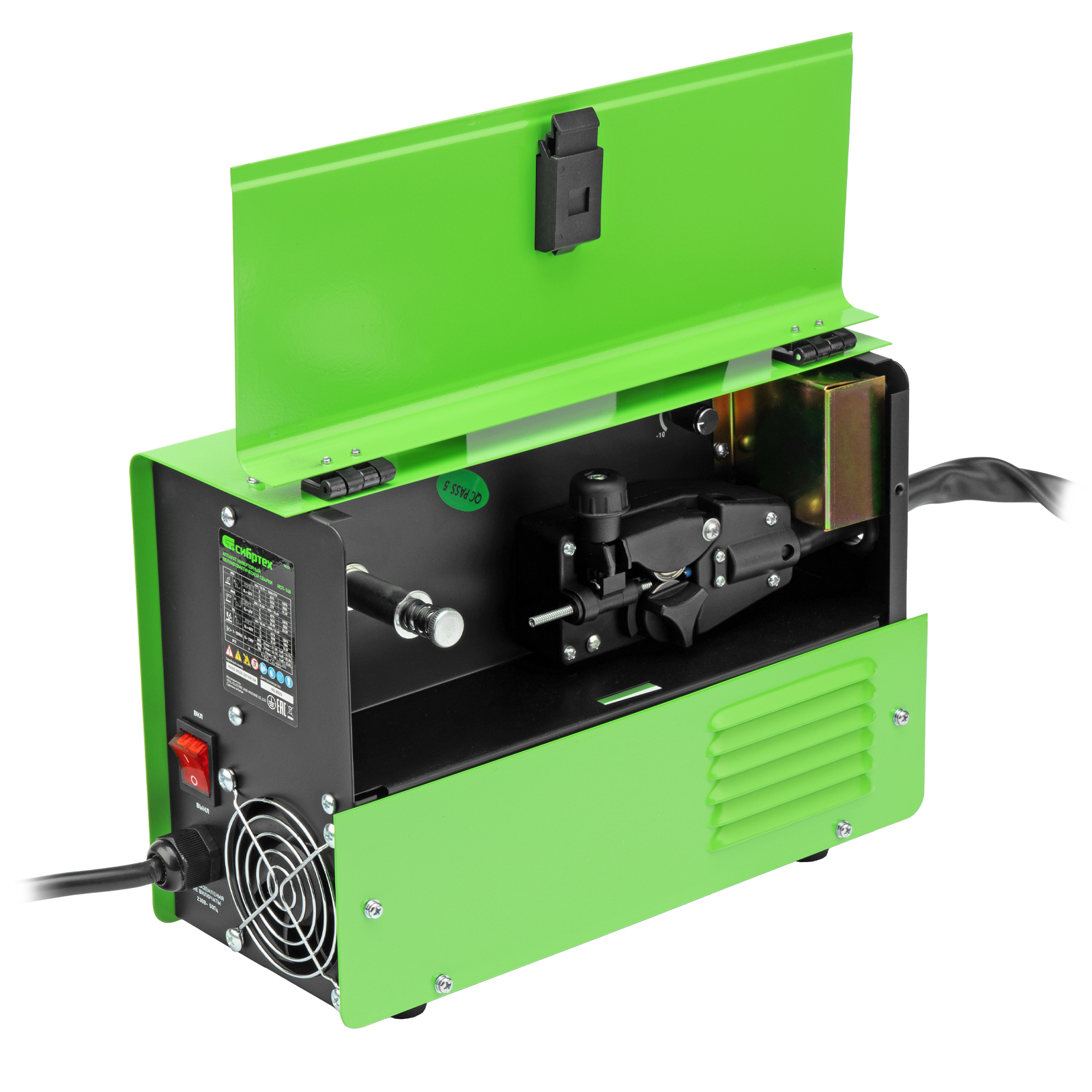 - Компактные расходники — сварочный аппарат совместим с катушками диаметром до 100 мм (1 кг).