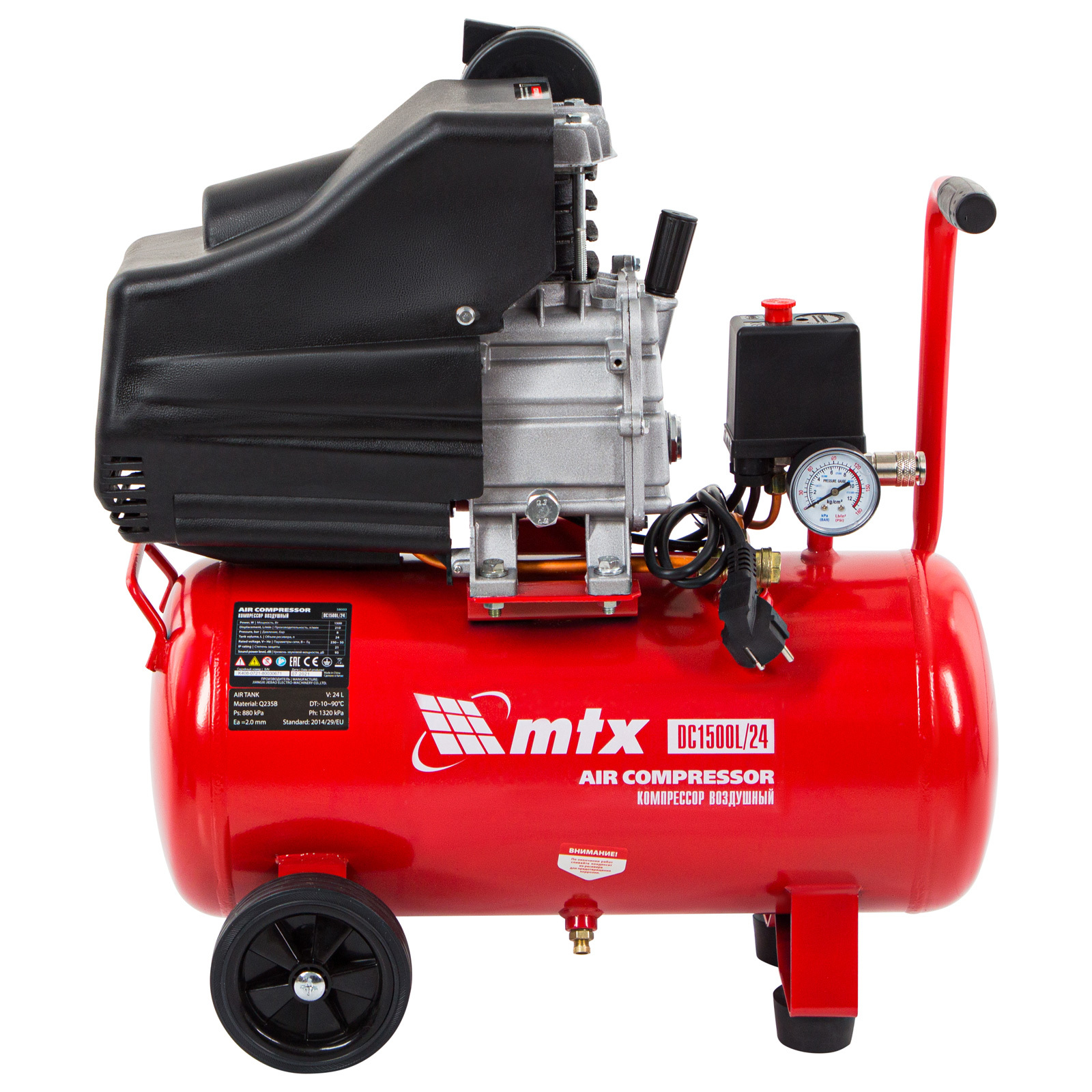 Компрессор воздушный MTX DC1500L/24 58003 мощностью 1,5 кВт и производительностью 210 л/мин, с ресивером объемом 24 л, предназначен для обеспечения сжатым атмосферным воздухом пневматического оборудования в бытовых условиях. Применяется для строительно-ремонтных работ в гараже, на дачном участке и совместим с такими пневмоинструментами, как гайковерт, краскопульт, степлер, продувочный пистолет. Компрессор способен подавать до 210 литров сжатого воздуха в минуту при максимальной нагрузке.