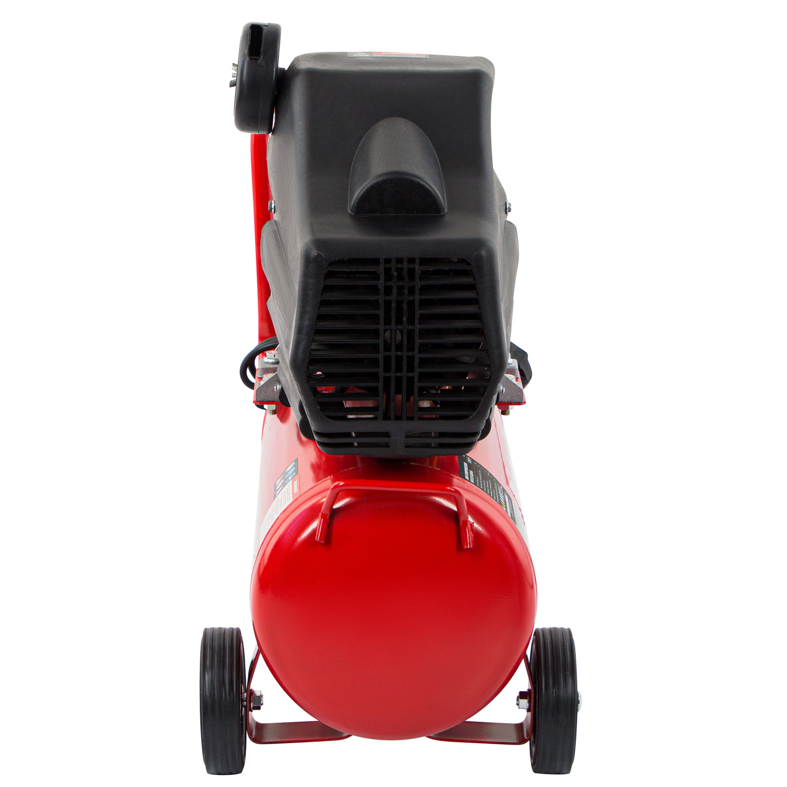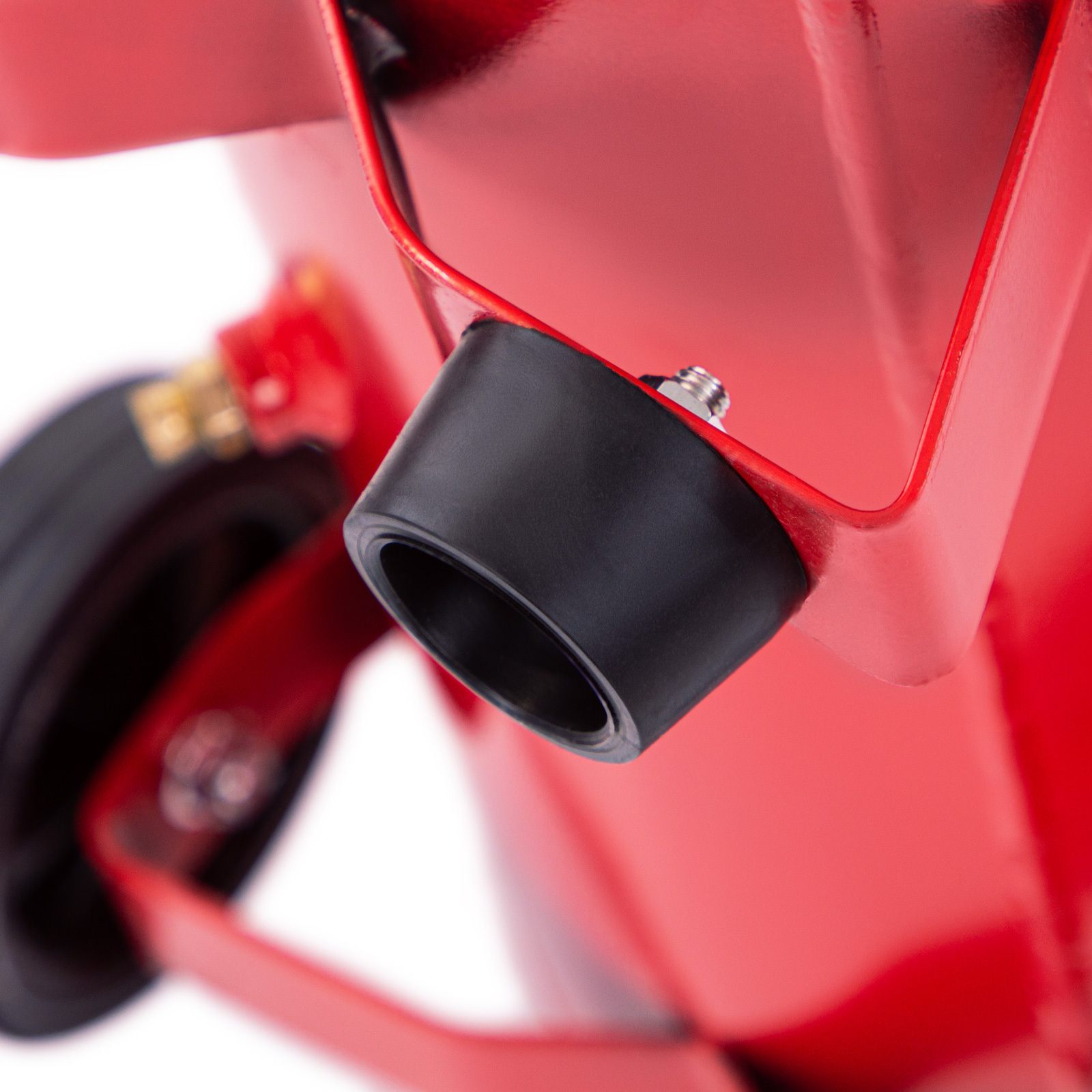 - Мобильность — для удобного перемещения компрессор оснащен колесами и нескользящей рукоятью.