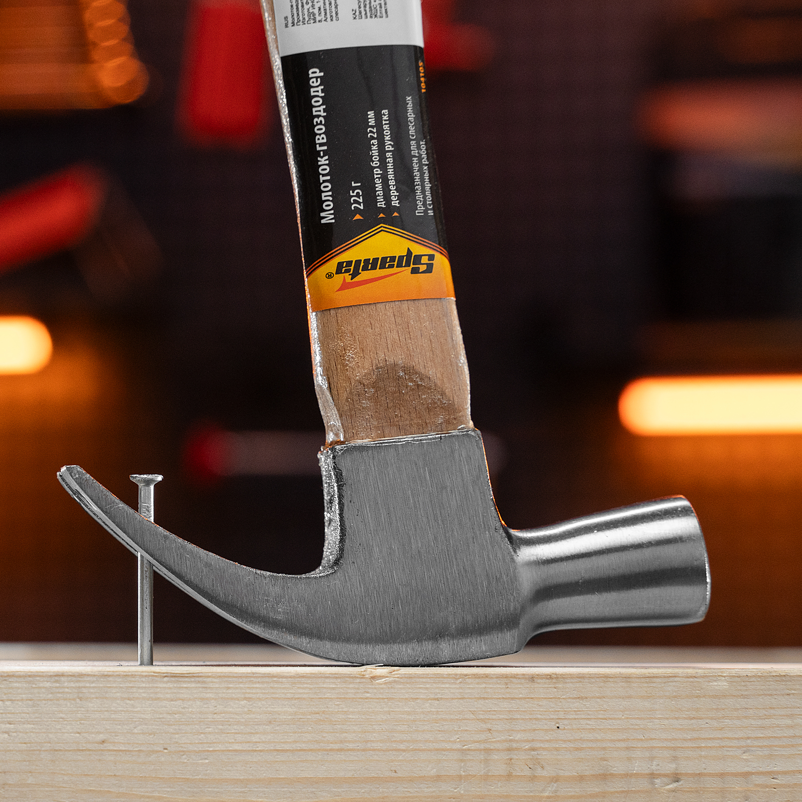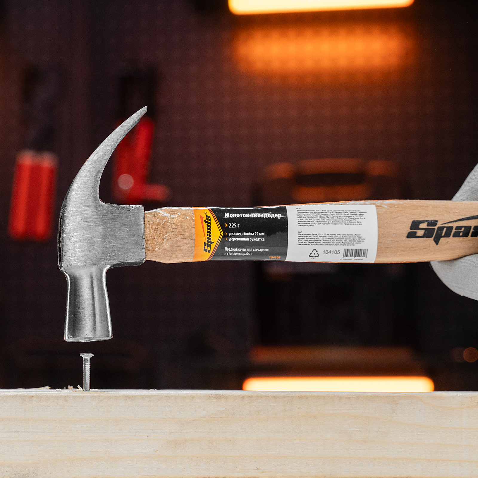 Молоток-гвоздодер Sparta 104105 с головкой весом 225 г и диаметром бойка 22 мм, с деревянной рукояткой, предназначен для слесарных, столярных и отделочных работ, будет полезен при сборке мебели. В носке головки имеется клиновидная прорезь, которая позволяет подцепить шляпку гвоздя. Поэтому молотком можно не только вбить крепеж, но и вытянуть неудачно забитый гвоздь.