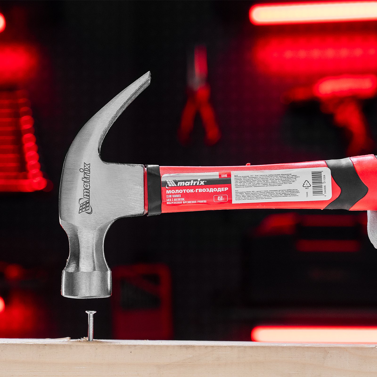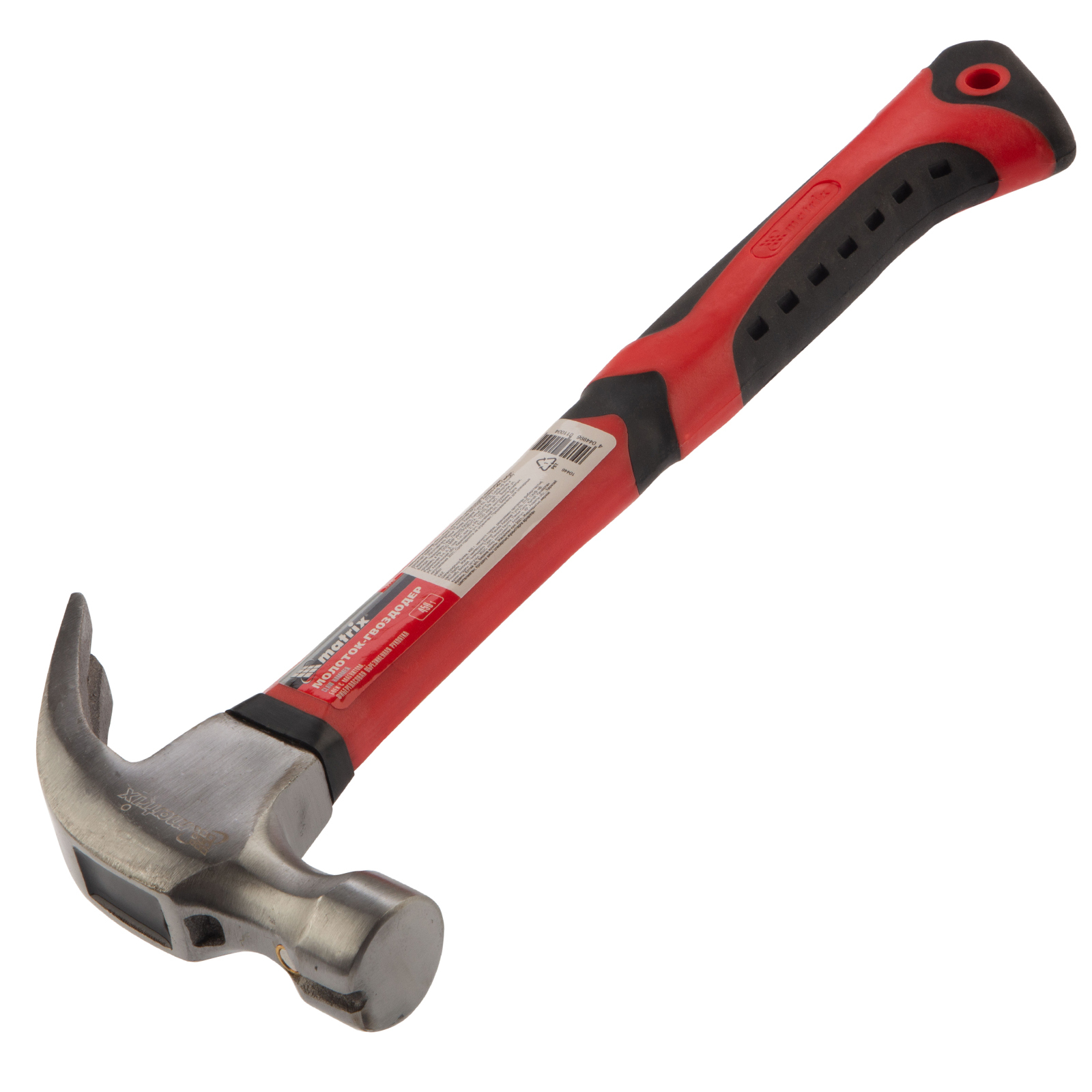 Молоток-гвоздодер Matrix 10446 с головкой весом 450 г, бойком с магнитом и фибергласовой обрезиненной рукояткой, используется для забивания гвоздей, а также способен вытянуть и придать правильную форму неправильно вбитому крепежу. В верхней части бойка имеется паз с магнитом, в котором можно зафиксировать гвоздь, — это позволяет не придерживать его рукой при забивании. Молоток-гвоздодер используется в строительстве, а также полезен при сборке мебели и в домашнем хозяйстве.