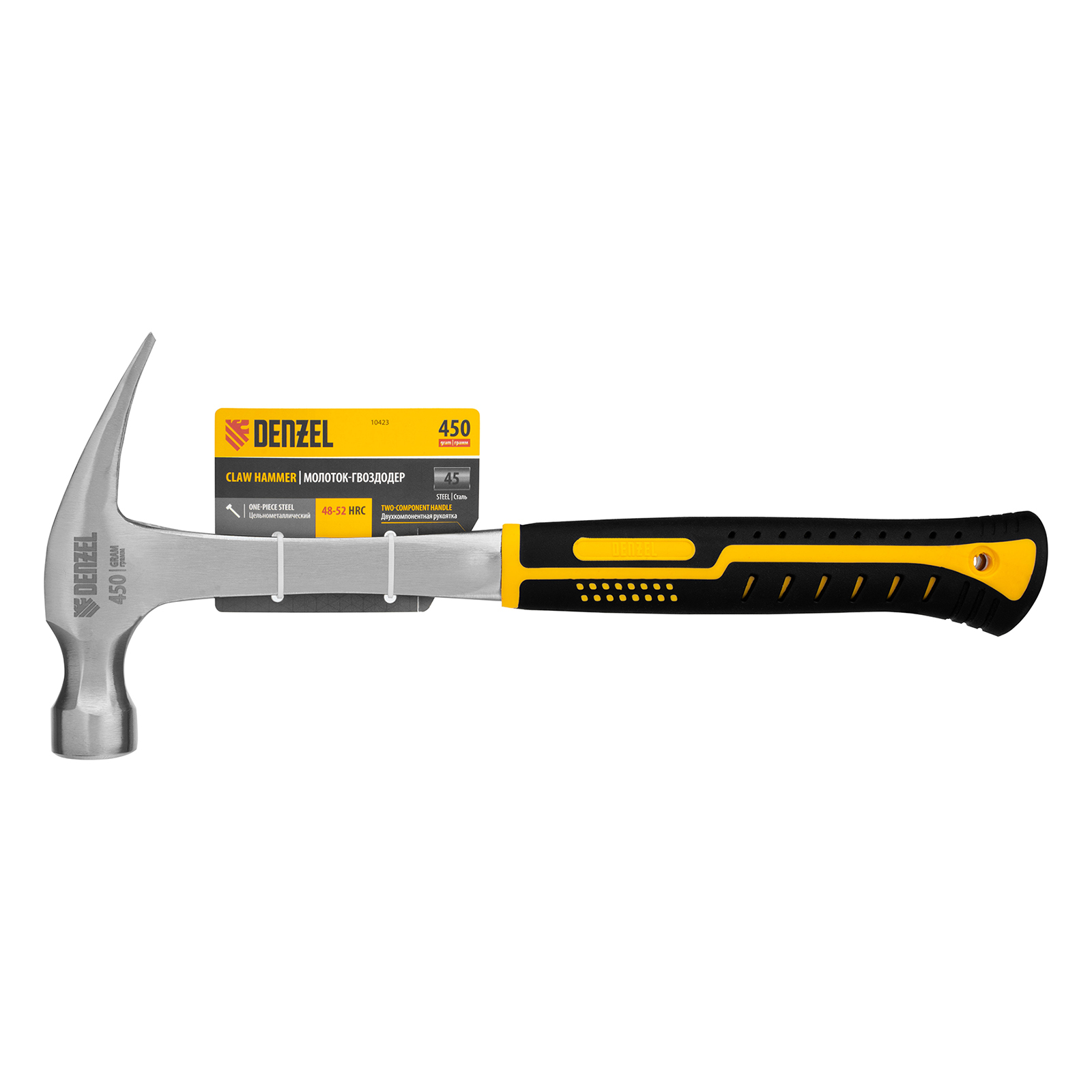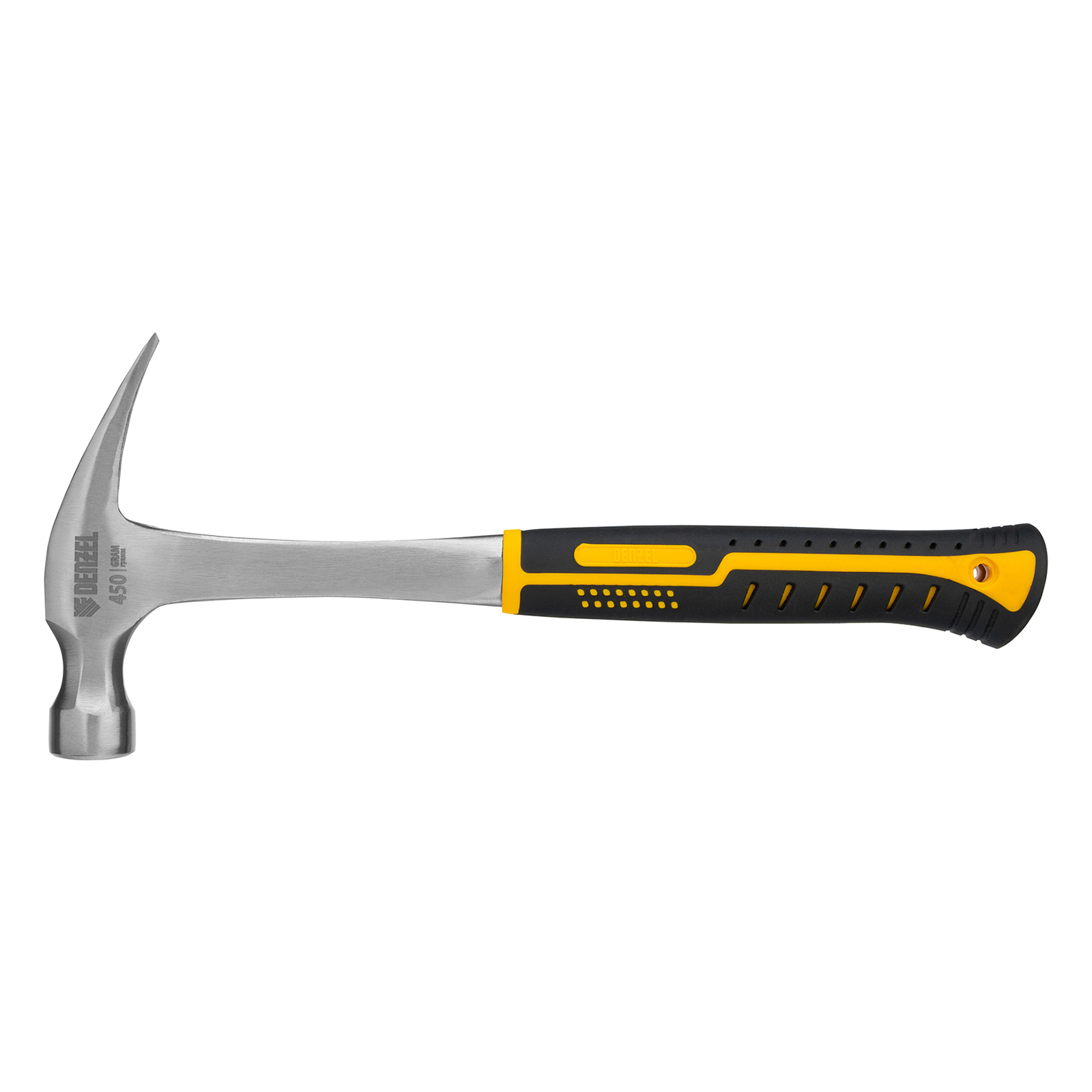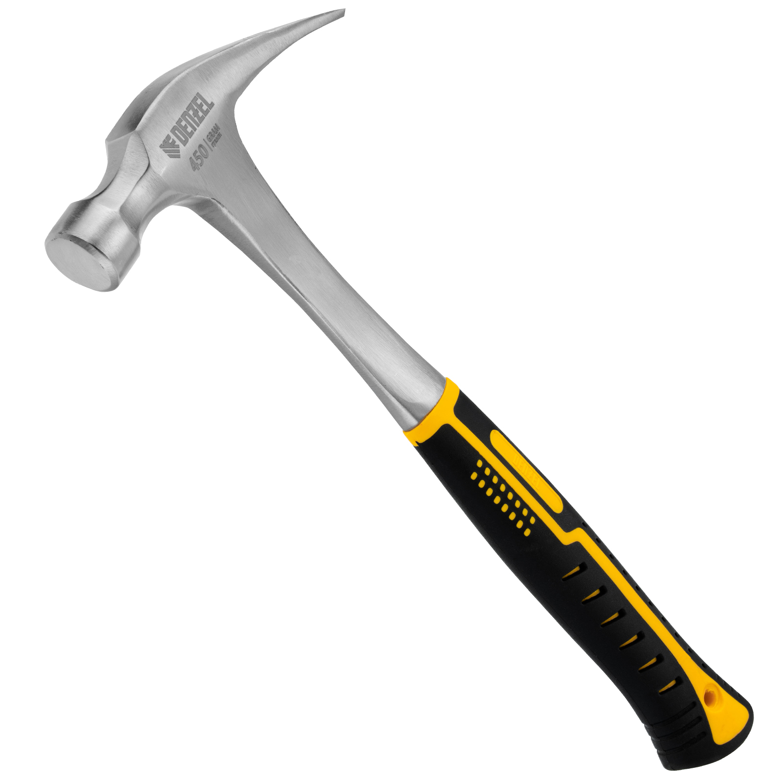 Цельнометаллический молоток-гвоздодер Denzel 10423 с головкой весом 450 г и двухкомпонентной рукояткой предназначен для забивания и извлечения гвоздей. Рекомендован как для домашнего, так и для профессионального применения, пригодится в слесарной мастерской, на даче, в гараже.