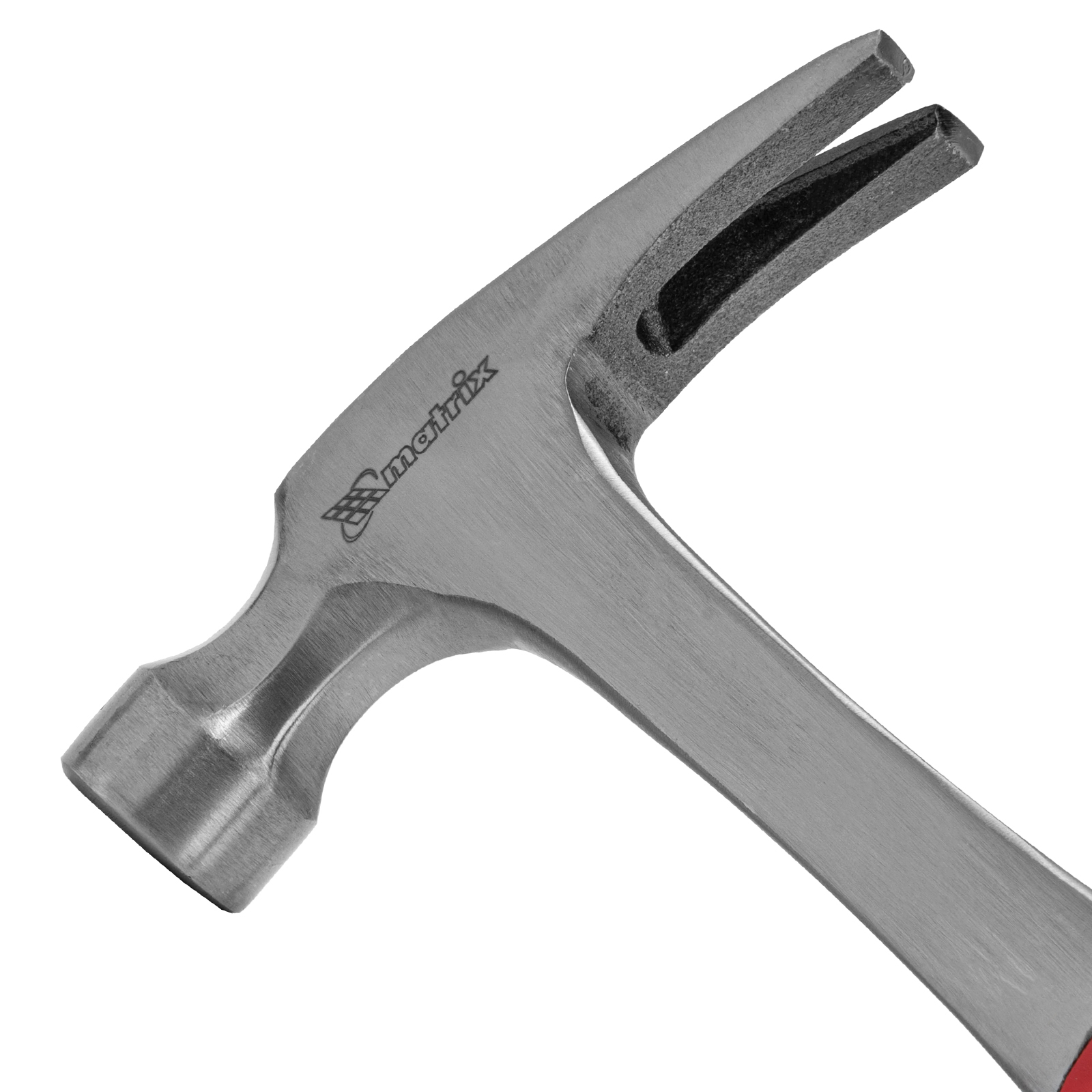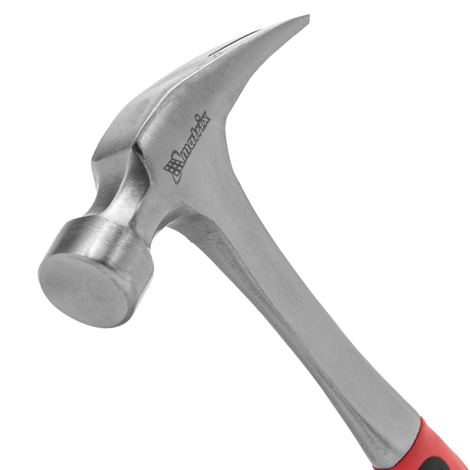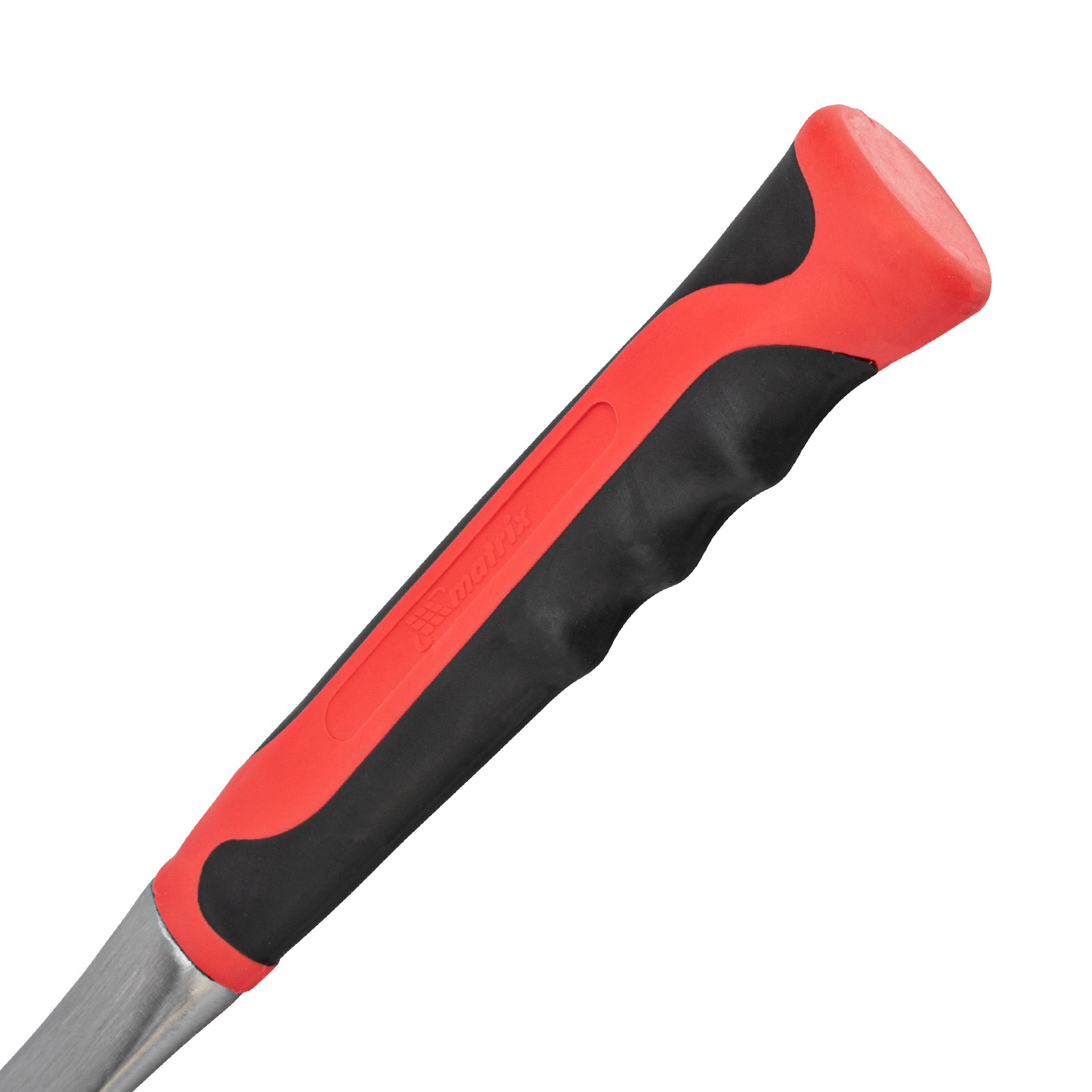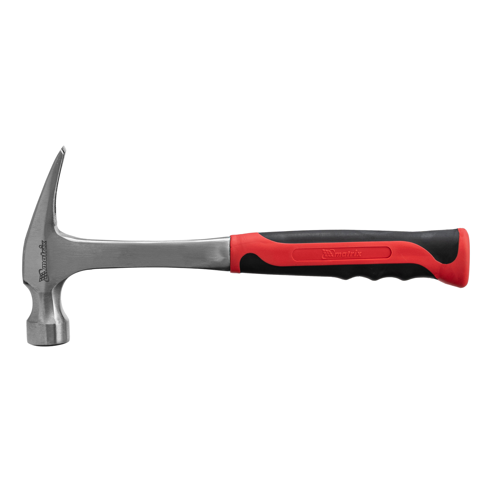 Цельнометаллический молоток-гвоздодер Matrix 10463 с рабочей головкой весом 570 г и двухкомпонентной рукояткой — ударный инструмент с функцией извлечения гвоздей. С одной стороны имеется круглый боек для нанесения ударов, а с другой — плоский изогнутый носок с клиновидной прорезью, позволяющей подцепить шляпку гвоздя. Инструмент используется в профессиональной сфере, а также подходит для решения бытовых задач.