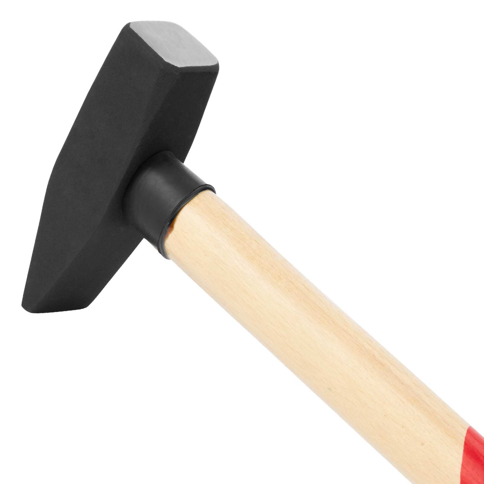 - Надежная конструкция — рукоятка расклинена, головка дополнительно зафиксирована эпоксидным клеем, увеличенная «юбка» в месте всада защищает рукоятку в случае промаха при ударе.