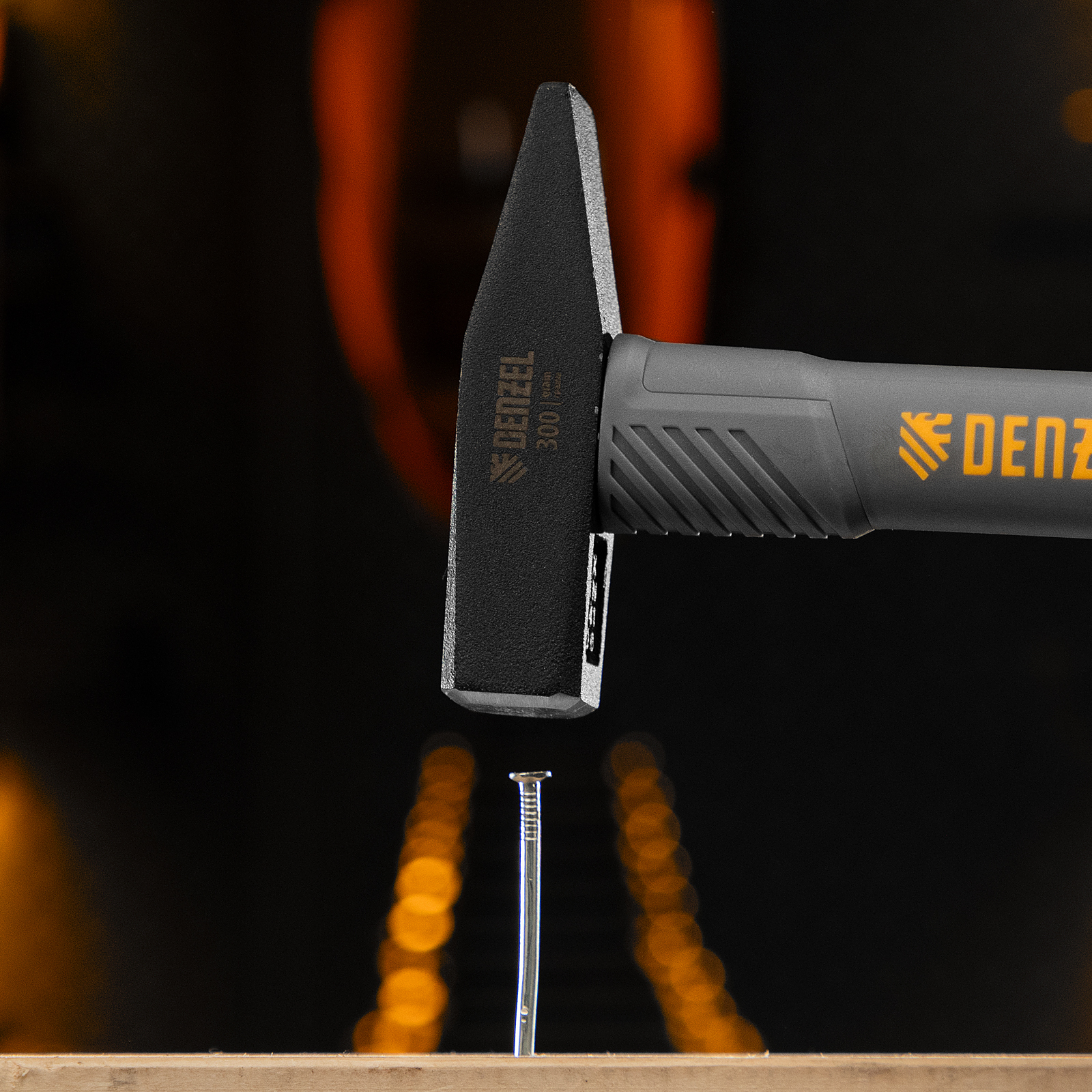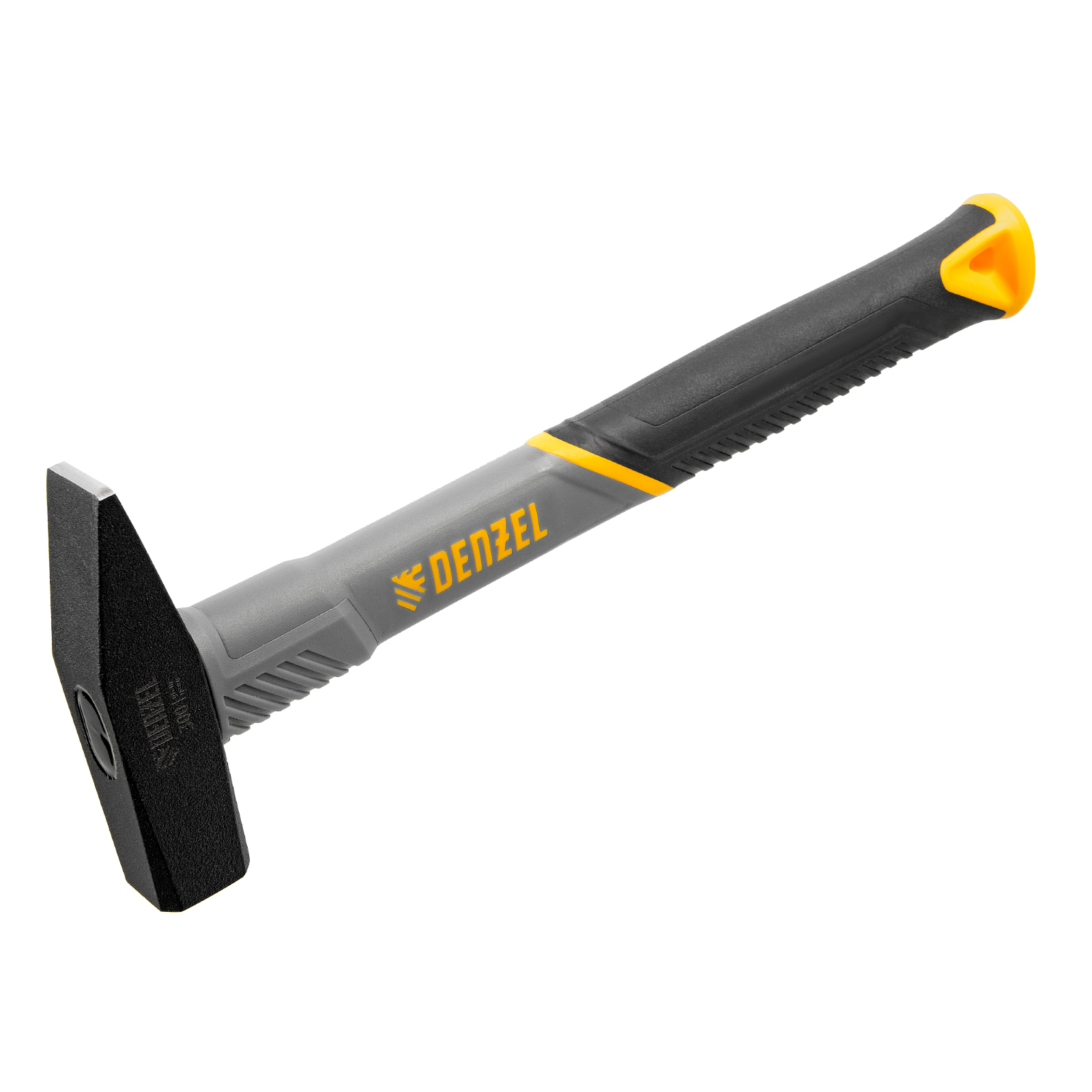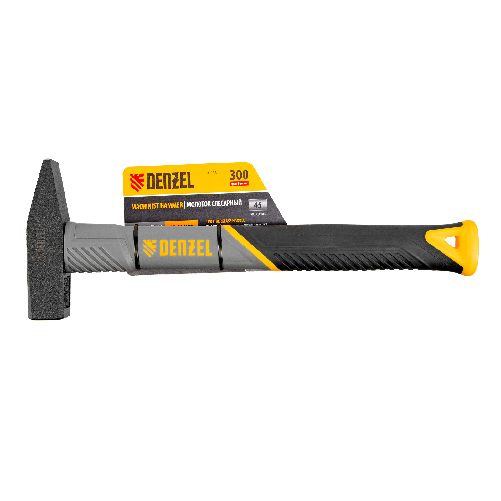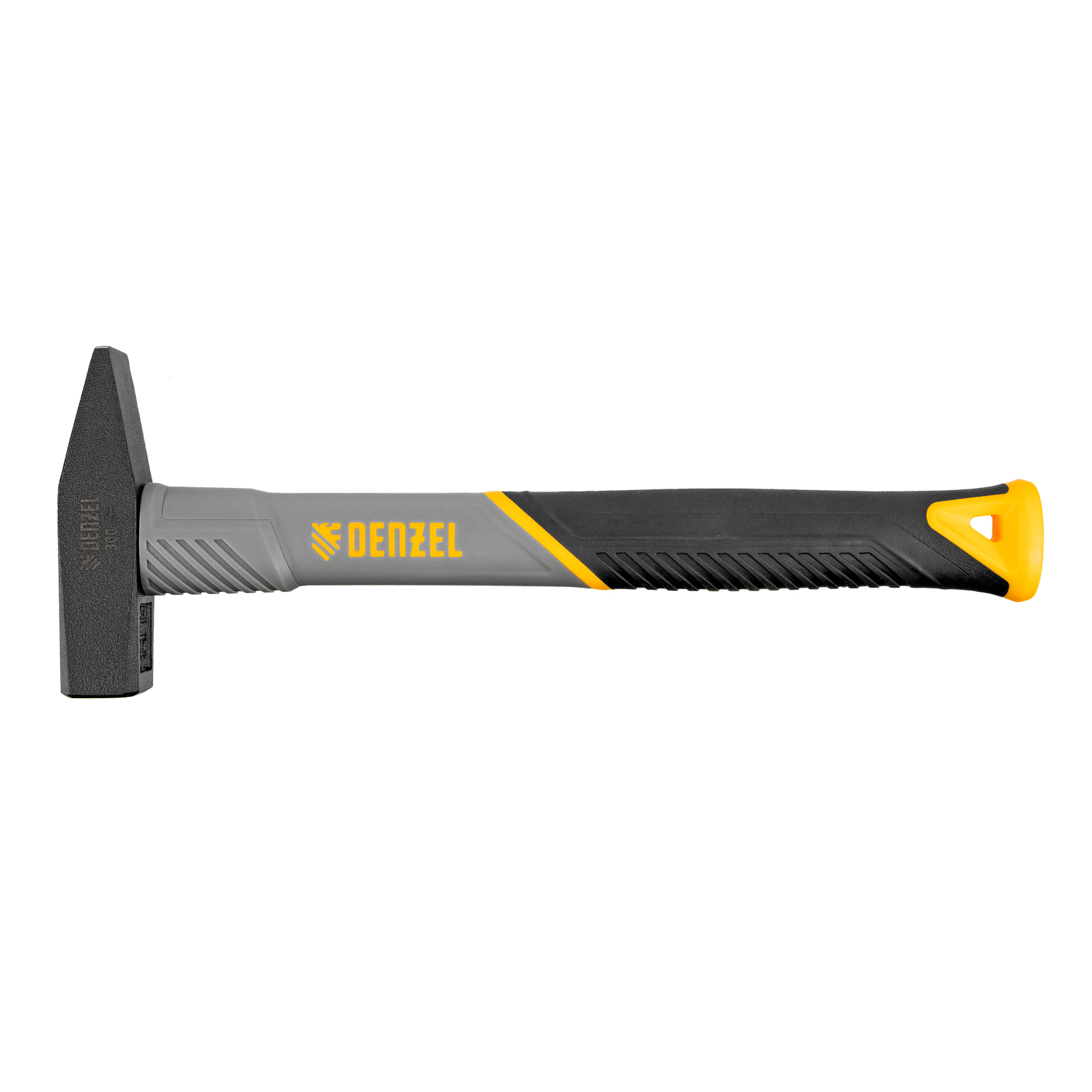 Молоток слесарный кованый Denzel 10483 с квадратным бойком весом 300 г и трехкомпонентной фибергласовой рукояткой с TPR-покрытием предназначен для работы с металлическими заготовками, забивания гвоздей, штырей, дюбелей и другого крепежа. Рукоятка выполнена в эксклюзивном дизайне. Молоток рекомендован для профессионального и домашнего применения.