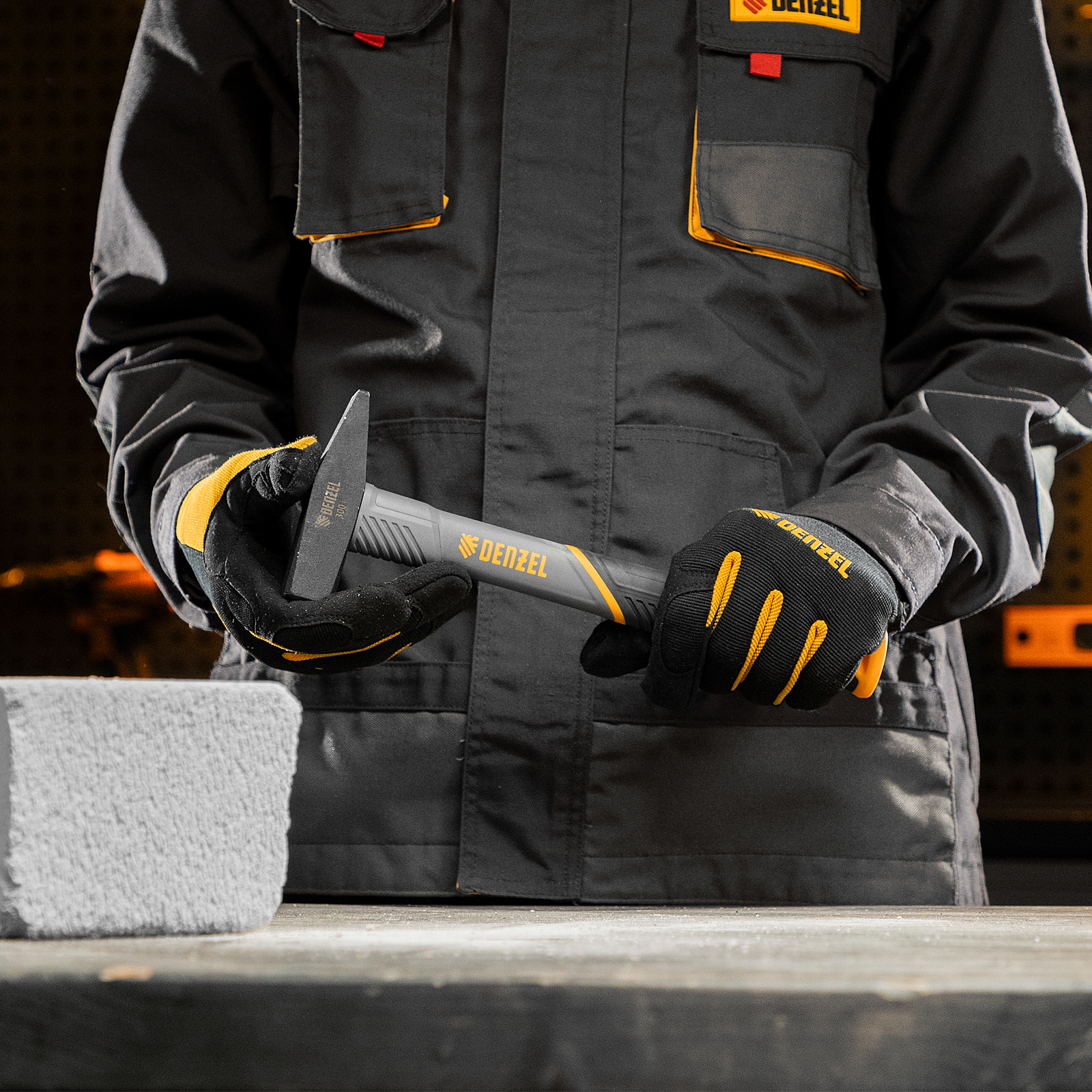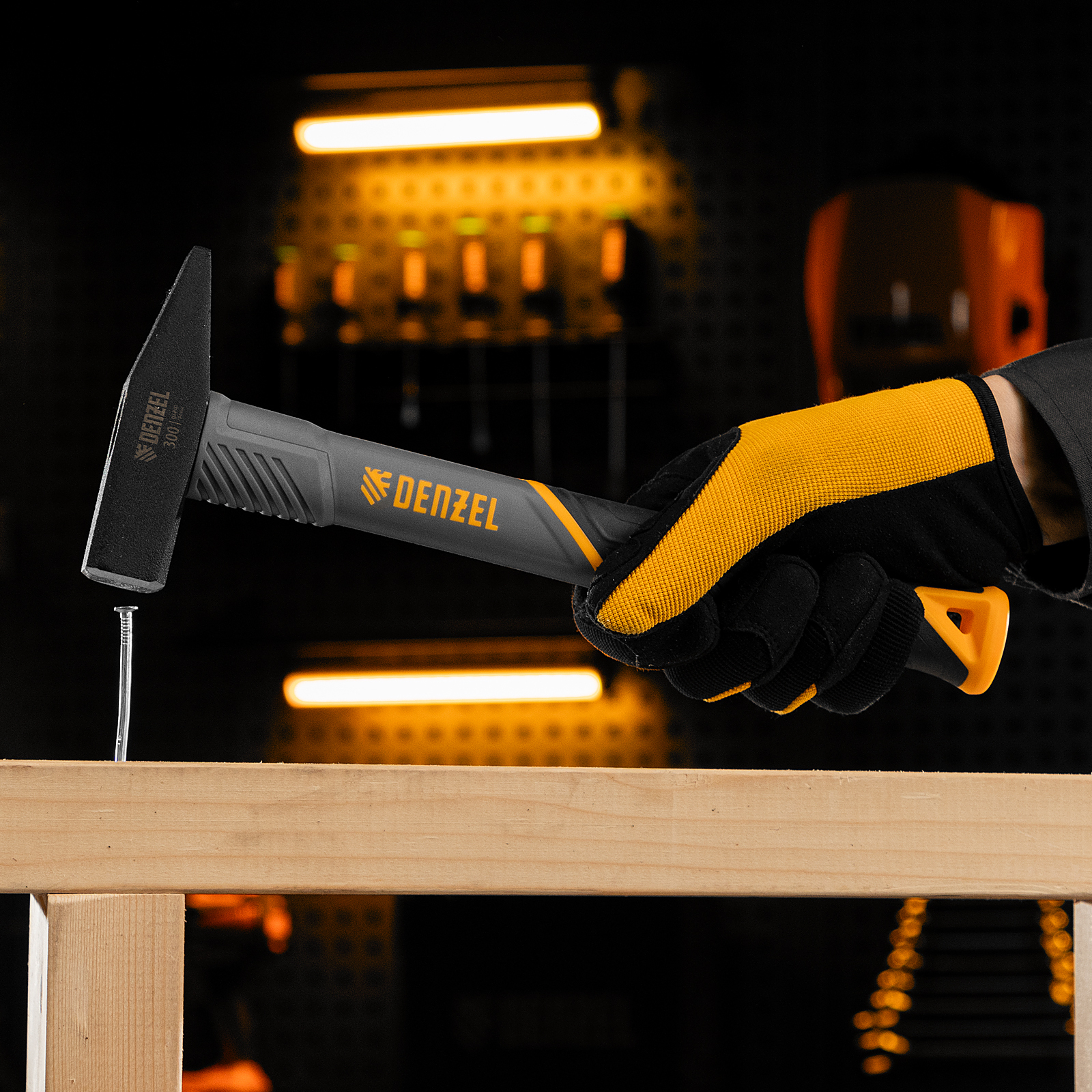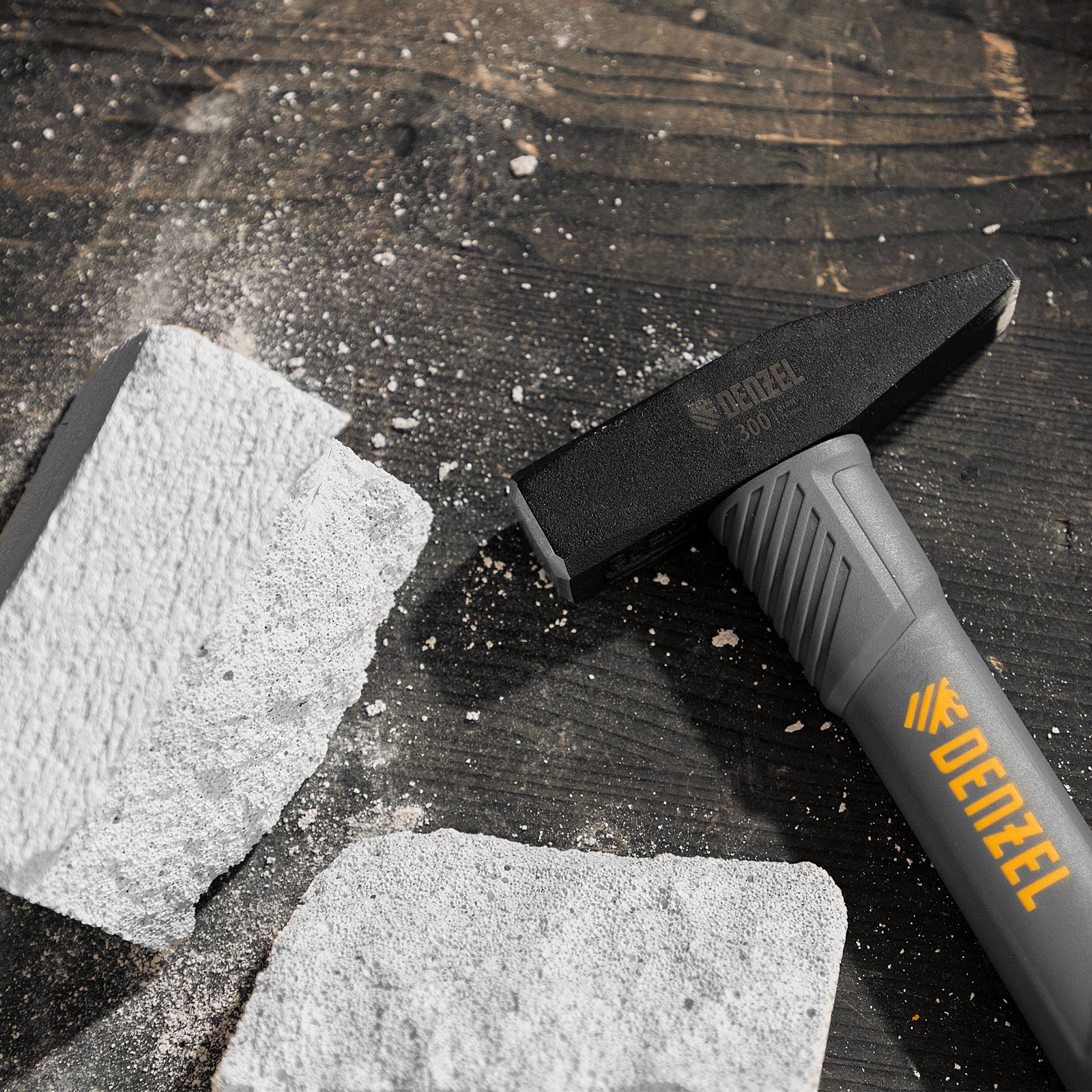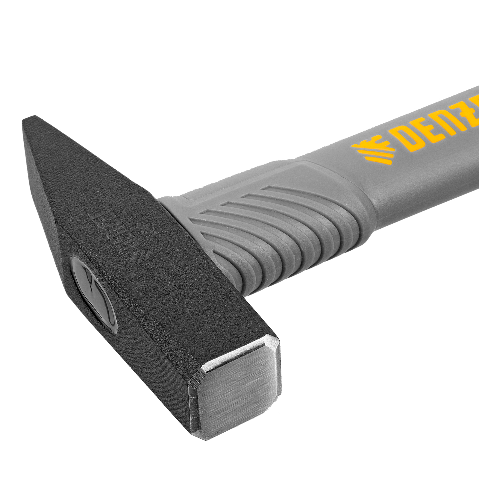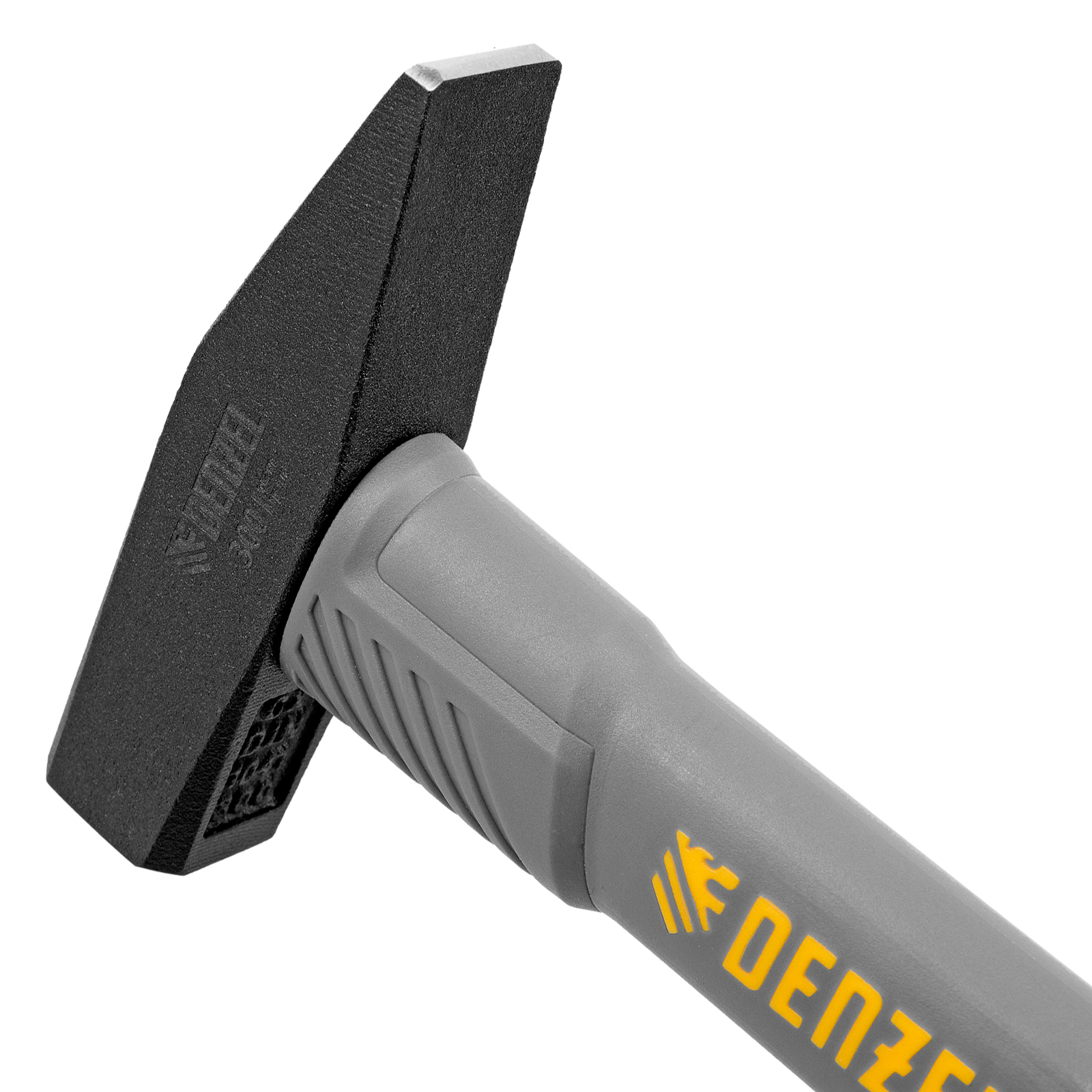 Молоток слесарный кованый Denzel 10483 с квадратным бойком весом 300 г и трехкомпонентной фибергласовой рукояткой с TPR-покрытием предназначен для работы с металлическими заготовками, забивания гвоздей, штырей, дюбелей и другого крепежа. Рукоятка выполнена в эксклюзивном дизайне. Молоток рекомендован для профессионального и домашнего применения.