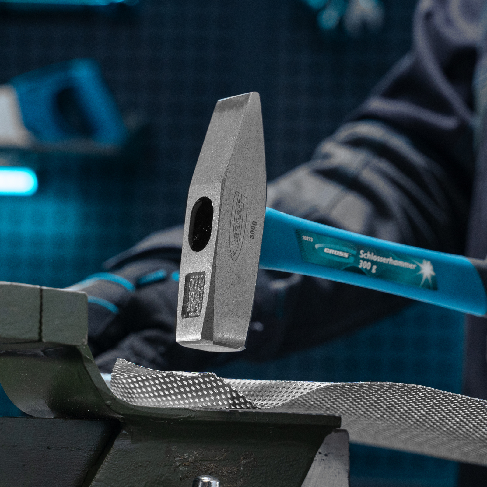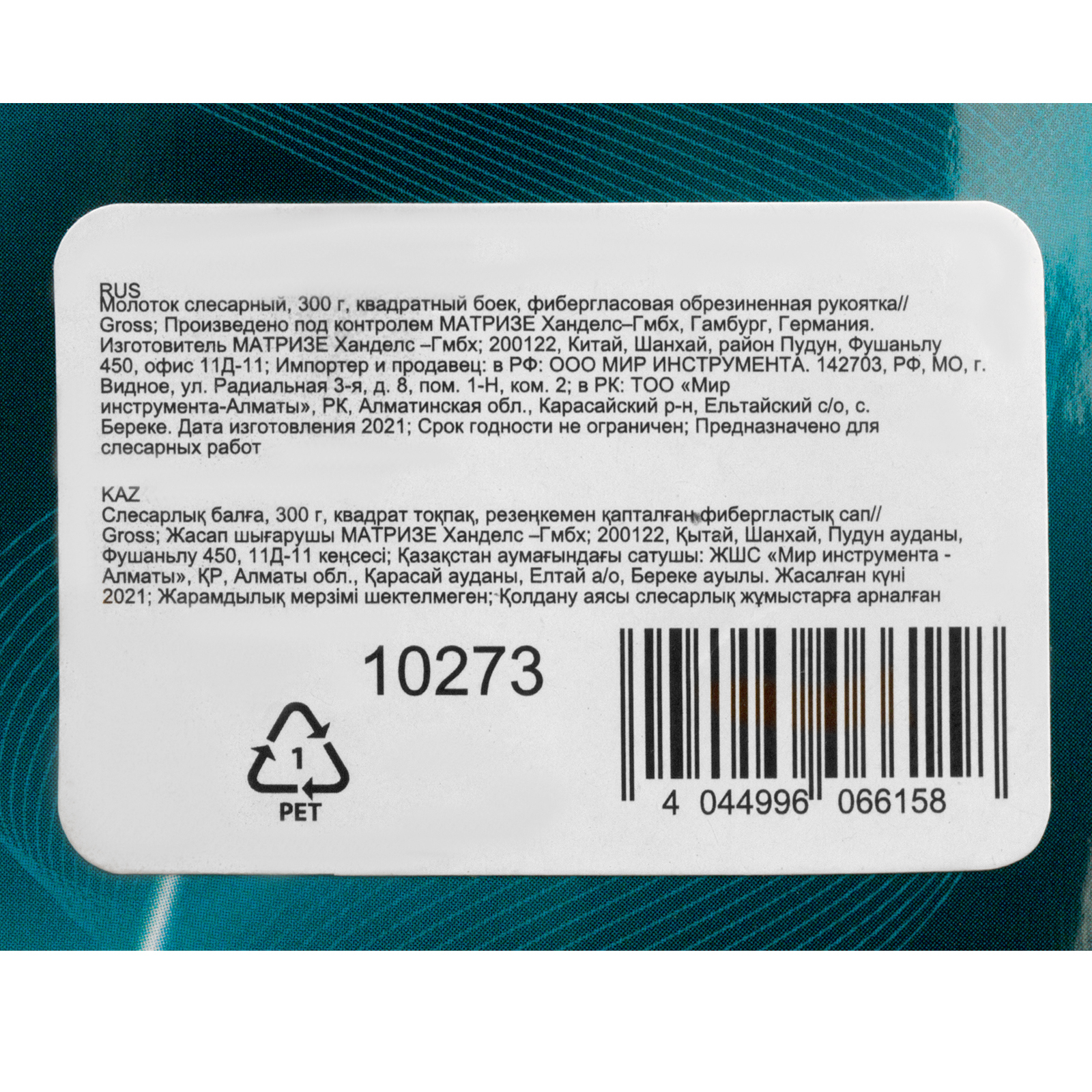 Слесарный молоток Gross 10273 с квадратным бойком весом 300 г и фибергласовой обрезиненной рукояткой предназначен для работы с металлическими заготовками, забивания гвоздей, штырей, дюбелей и других крепежей. Подходит для манипуляций в узких местах благодаря заостренной форме бойка. Молоток рекомендован для профессионального и домашнего применения.