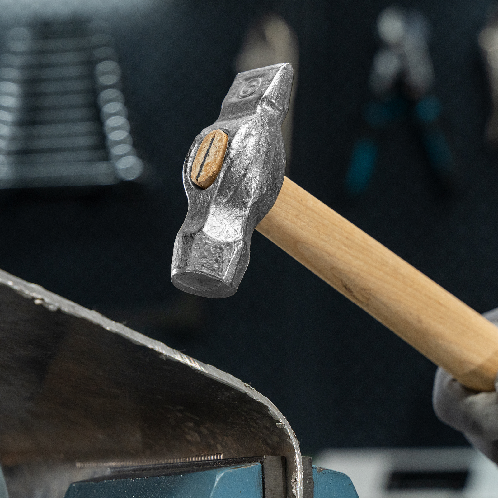 Слесарный молоток 10240 с круглым бойком весом 500 г и деревянной рукояткой предназначен для работ по металлу, а также для забивания гвоздей, дюбелей, штырей и других крепежных элементов. Утонченный с одной стороны боек позволяет наносить удары в узких местах. Инструмент может использоваться на строительной площадке, во время ремонта дома или на даче, пригодится также и в гараже.