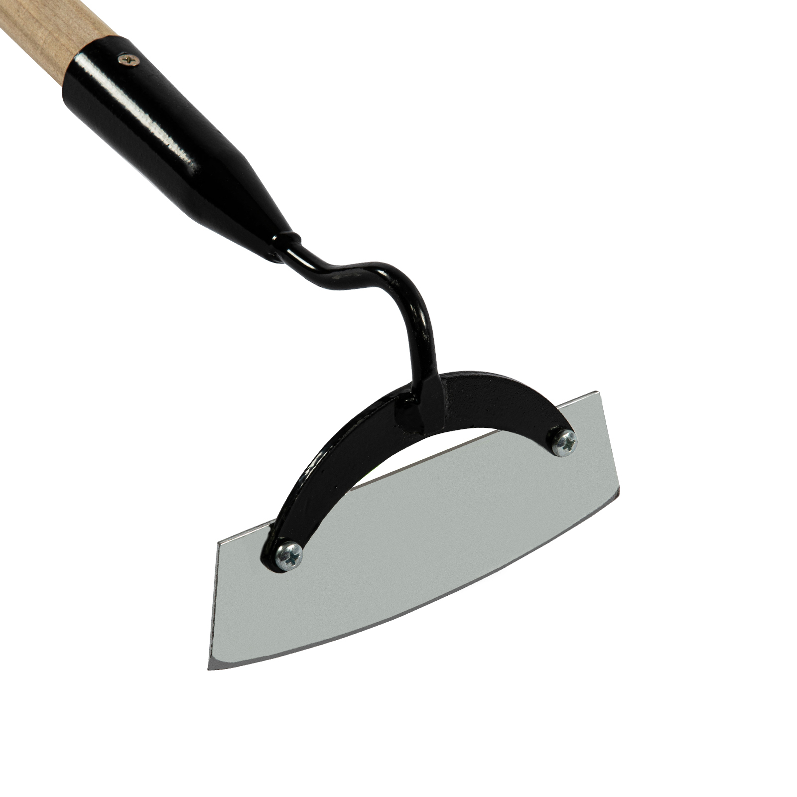 - Надежная фиксация — полотно соединено с тулейкой винтами, а черенок закреплен саморезом.