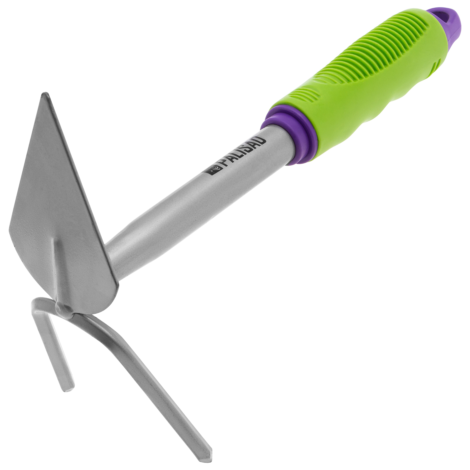 Комбинированная мотыжка Palisad CONNECT 63005, 80 х 285 мм, из стали, с пластиковой рукояткой, предназначена для проведения садово-огородных работ на небольших участках. Она сочетает в себе функции культиватора и мотыги за счет двухсторонней рабочей части, поэтому подходит для рыхления и прополки почвы. Узкая рабочая часть 80 мм и небольшая длина 285 мм позволяют с удобством работать в труднодоступных местах.