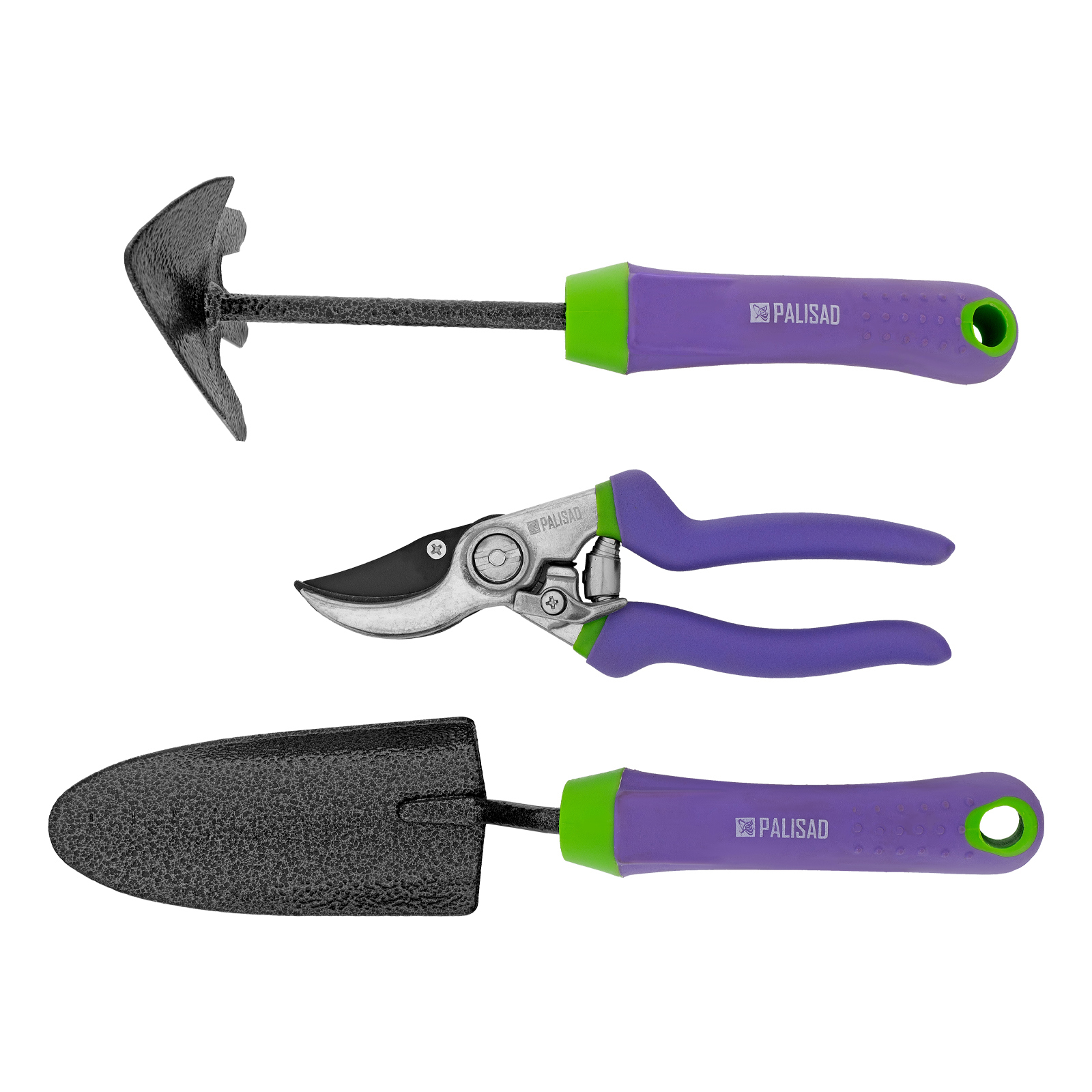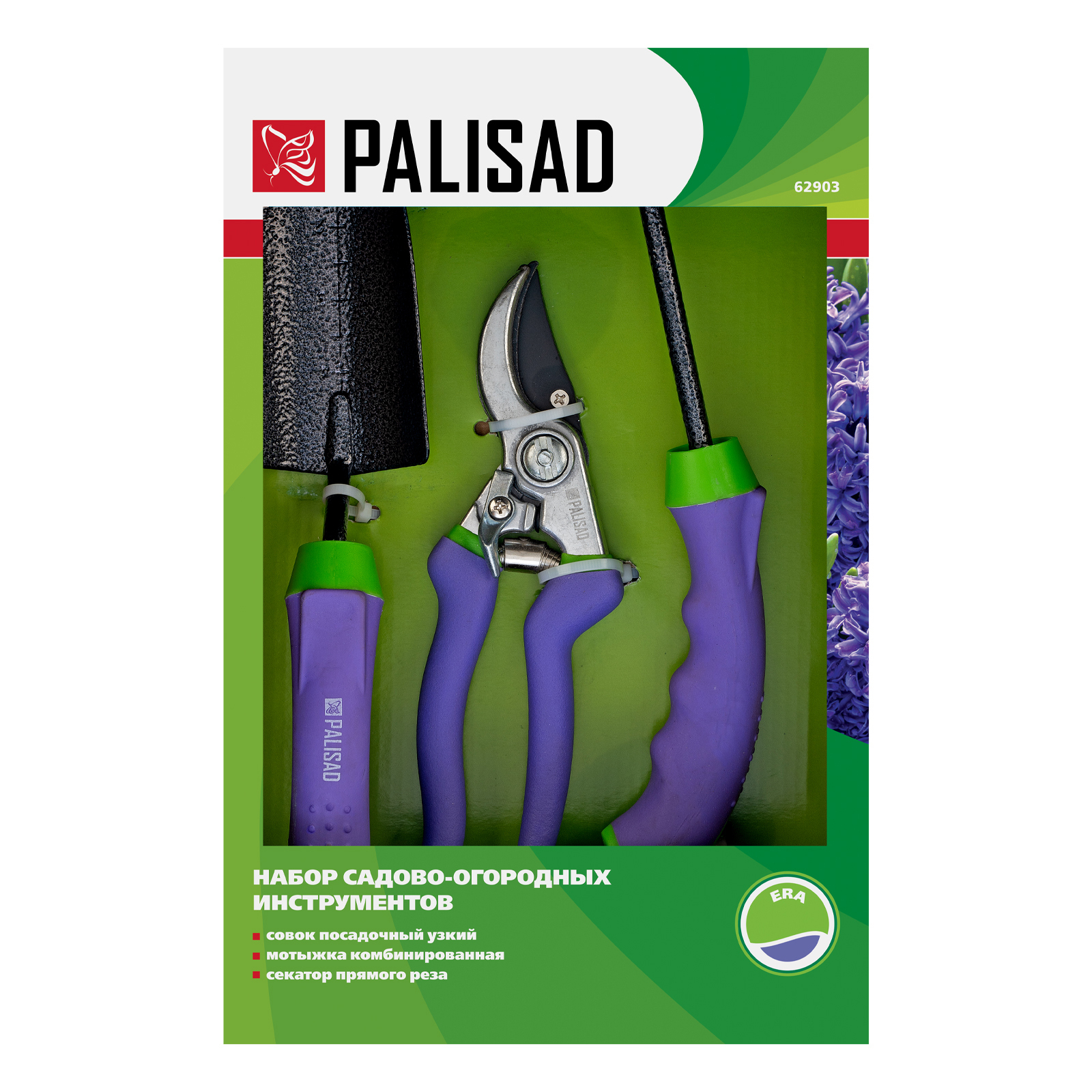 Набор Palisad Era 62903 состоит из 3 садовых инструментов с обрезиненными эргономичными рукоятками — комбинированной мотыжки, совка и секатора. Они позволяют вскапывать, пропалывать, рыхлить почву, готовить лунки и борозды, а также обрезать тонкие живые побеги, ветки и стебли. Совок и мотыжка изготовлены из среднеуглеродистой стали и покрыты молотковой эмалью, поэтому они прочны, устойчивы к коррозии и долговечны. Секатор имеет цельнолитую алюминиевую конструкцию и рассчитан на длительную эксплуатацию. Набор предназначен для садово-огородных работ.