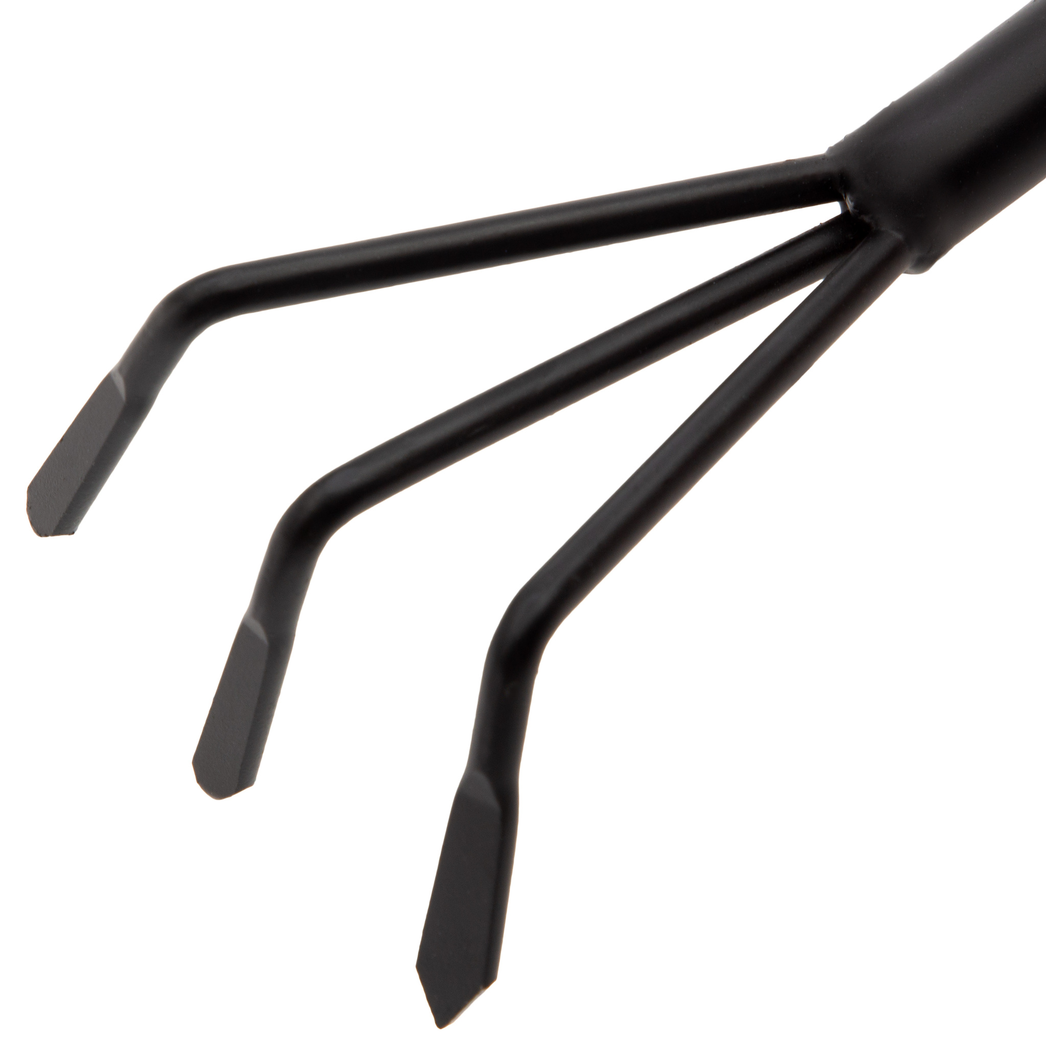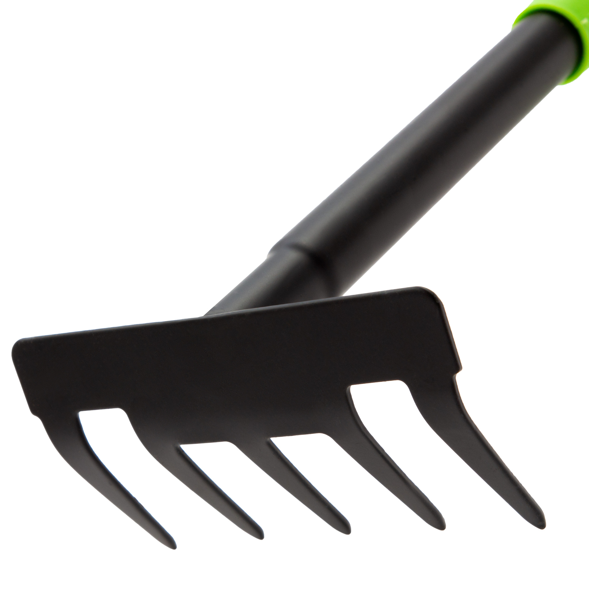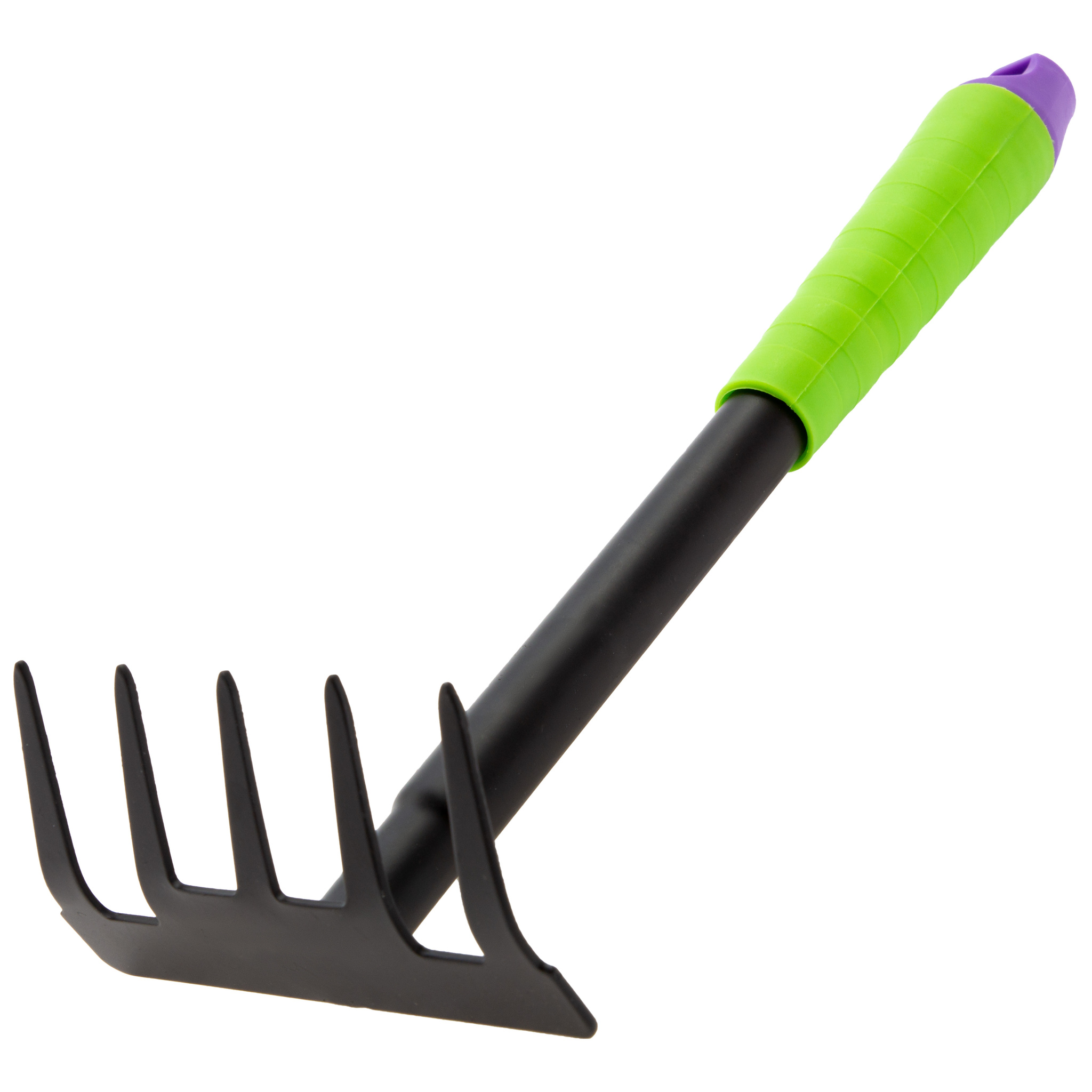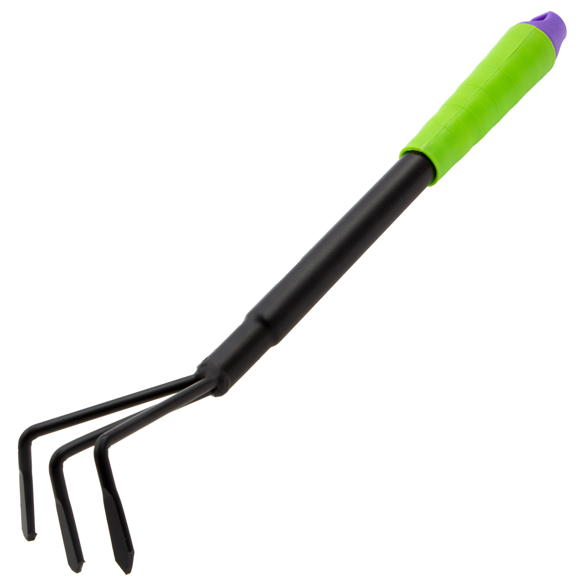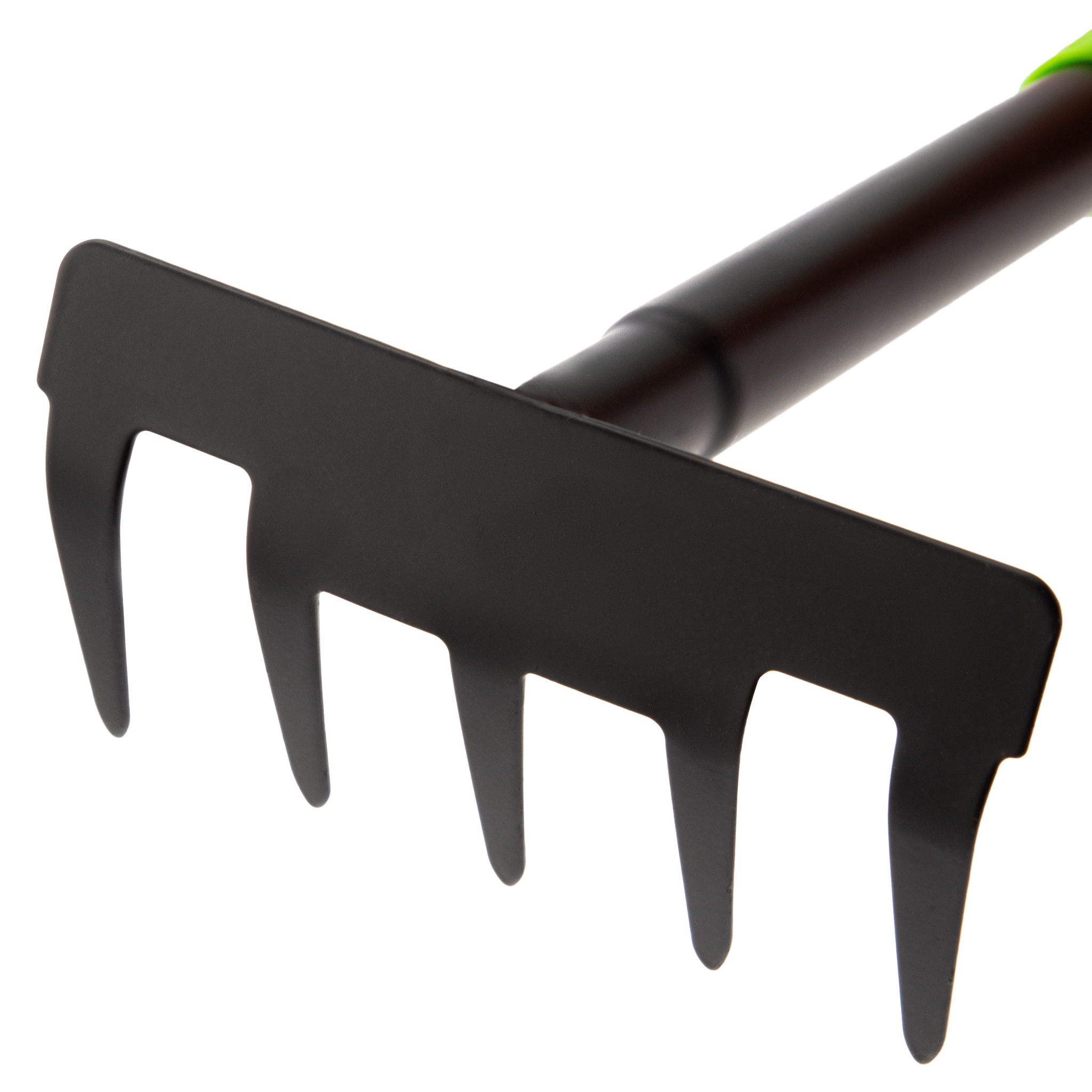 - Качественная аэрация — рыхлитель и классические грабли с заостренными зубьями легко проникают в почву.