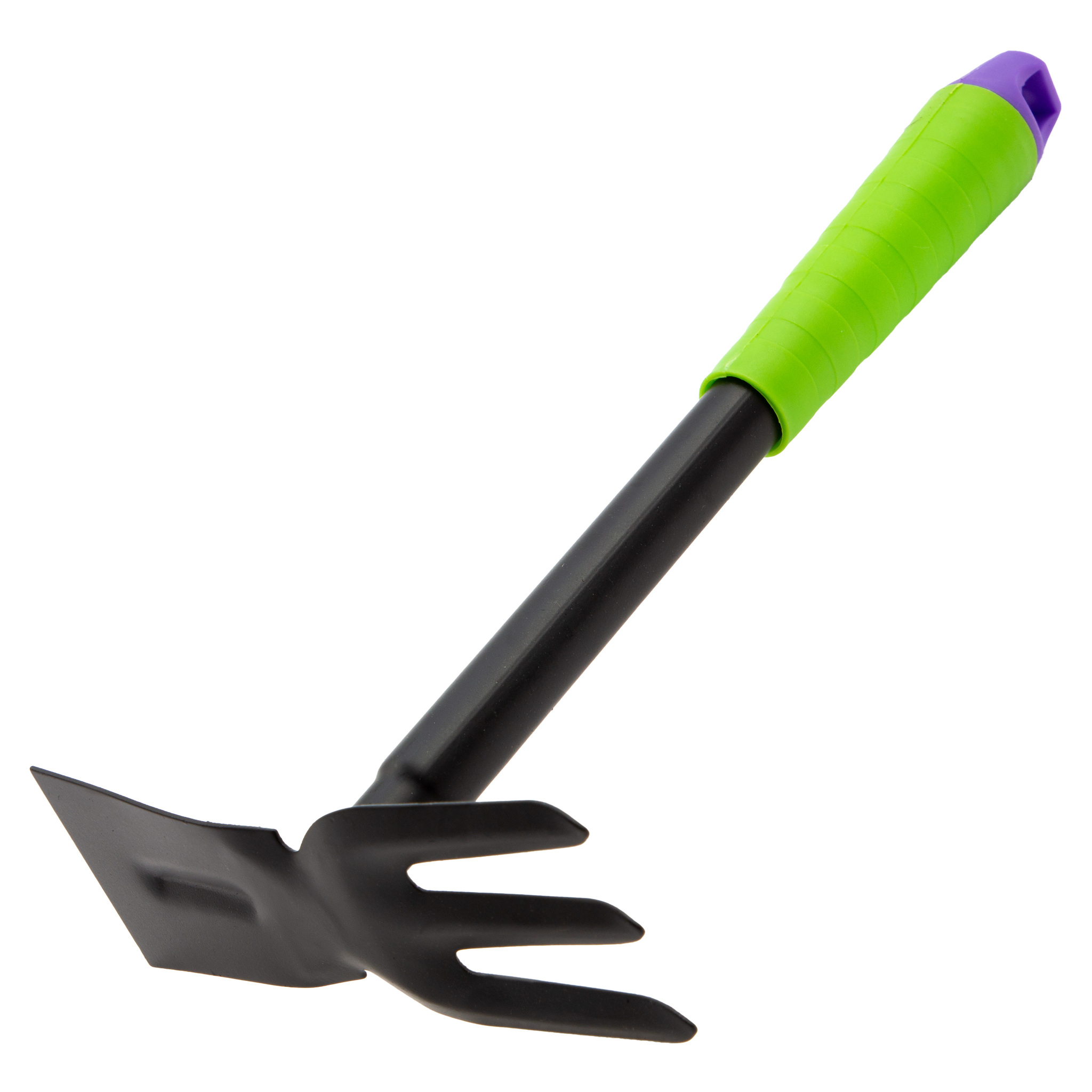 - Удобное вскапывание и рыхление почвы в труднодоступных местах — полотно мотыжки совмещено с рыхлителем.