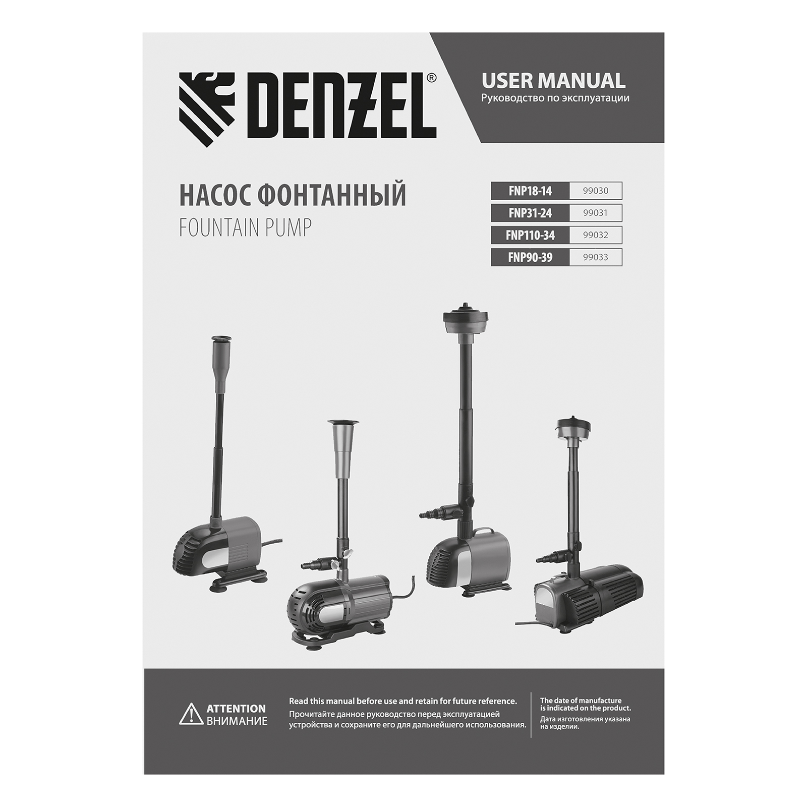 Фонтанный насос Denzel FNP110-34 99032 мощностью 112 Вт, с насадками колокольчик/каскад/гейзер, перекачивает 3400 л воды в час и обеспечивает максимальную высоту подъема 3,4 м. Позволяет создать декоративный фонтан, украсив водоем и оживив ландшафт дачного участка. Установив одну из входящих в комплект насадок, можно получить наиболее подходящий тип струи: в виде колокольчика, каскада или гейзера. Также в конструкции насоса предусмотрен специальный патрубок для создания водопада.