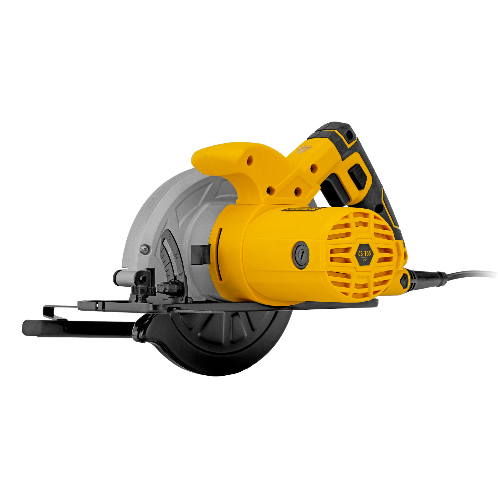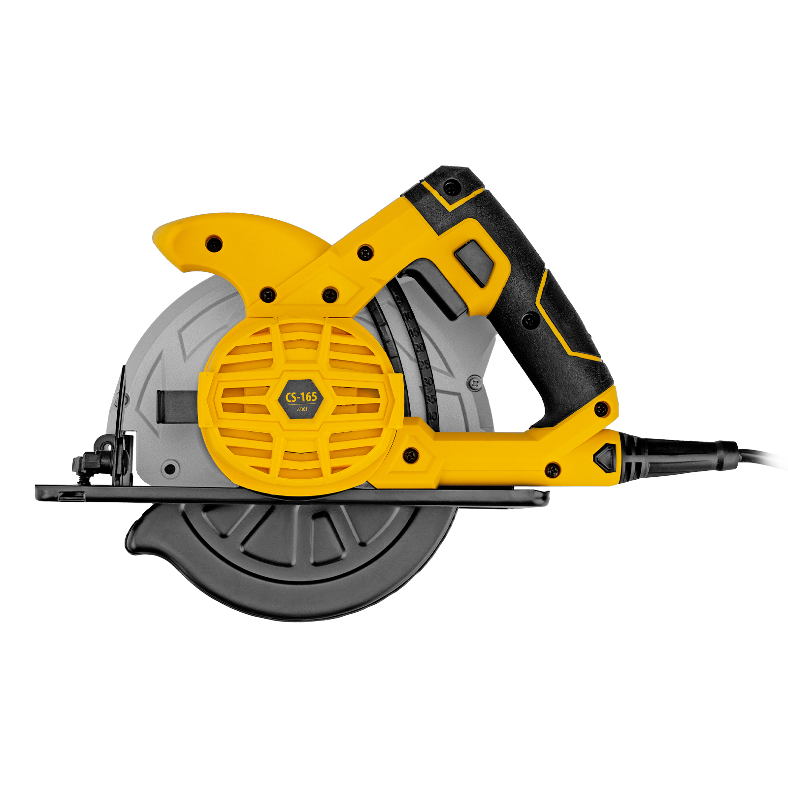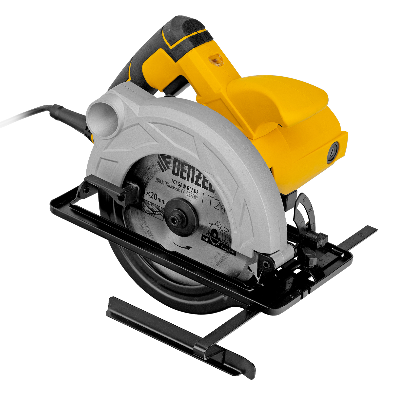 Циркулярная пила Denzel CS-165 мощностью 1200 Вт с пильным диском диаметром 165 мм предназначена для реза листового пиломатериала, ДСП, ДВП, а также для раскроя фанеры. Самая компактная из линейки Denzel CS, она весит всего 3,6 кг — это значительно снижает нагрузку на руки мастера и позволяет управлять инструментом одной рукой.,Двигатель мощностью 1,2 кВт обеспечивает частоту вращения пильного диска 5500 об/мин. Специальный рычаг-фиксатор позволяет легко регулировать глубину пропила от 0 до 55 мм.
