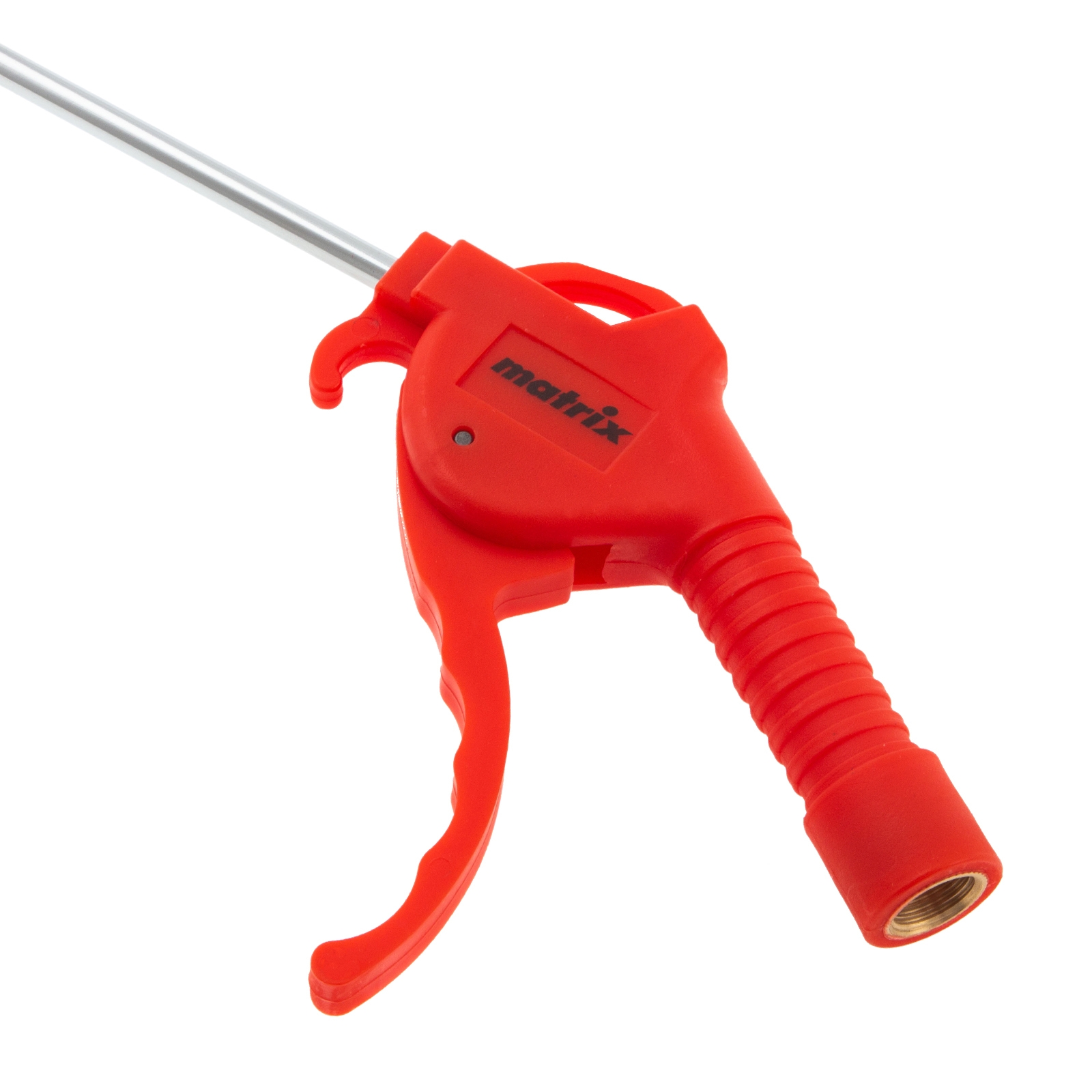 Пистолет продувочный Matrix 57334 с удлиненным изогнутым соплом длиной 270 мм подходит для применения в быту, в автосервисах, в небольших мастерских и на строительных объектах. С помощью потока сжатого до 8 бар воздуха эффективно очищает отверстия, шланги, пазы деталей и поверхности с производительностью до 270 л/час. Продувочный пистолет отличается высоким уровнем пожарной безопасности, поэтому может использоваться во влажных помещениях.