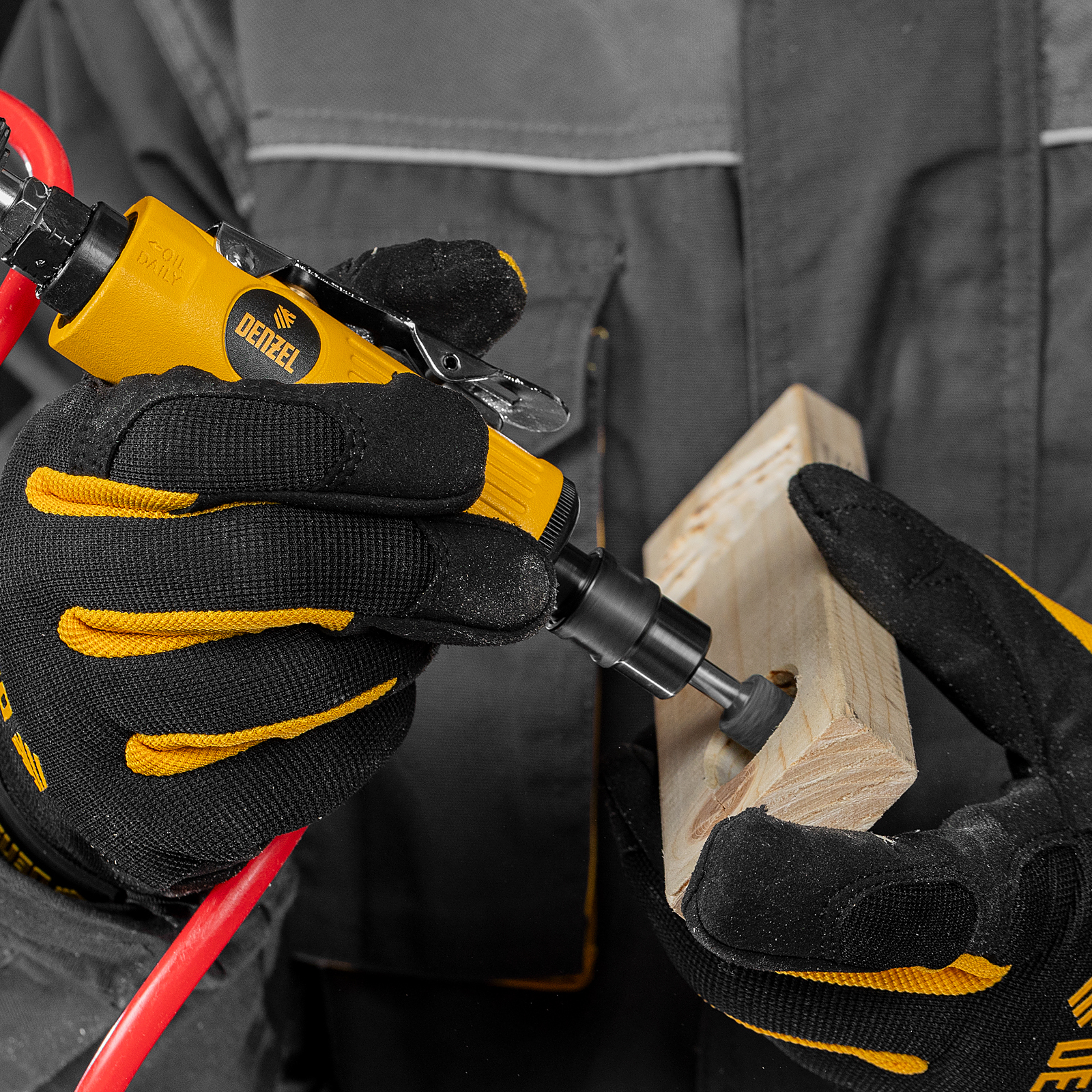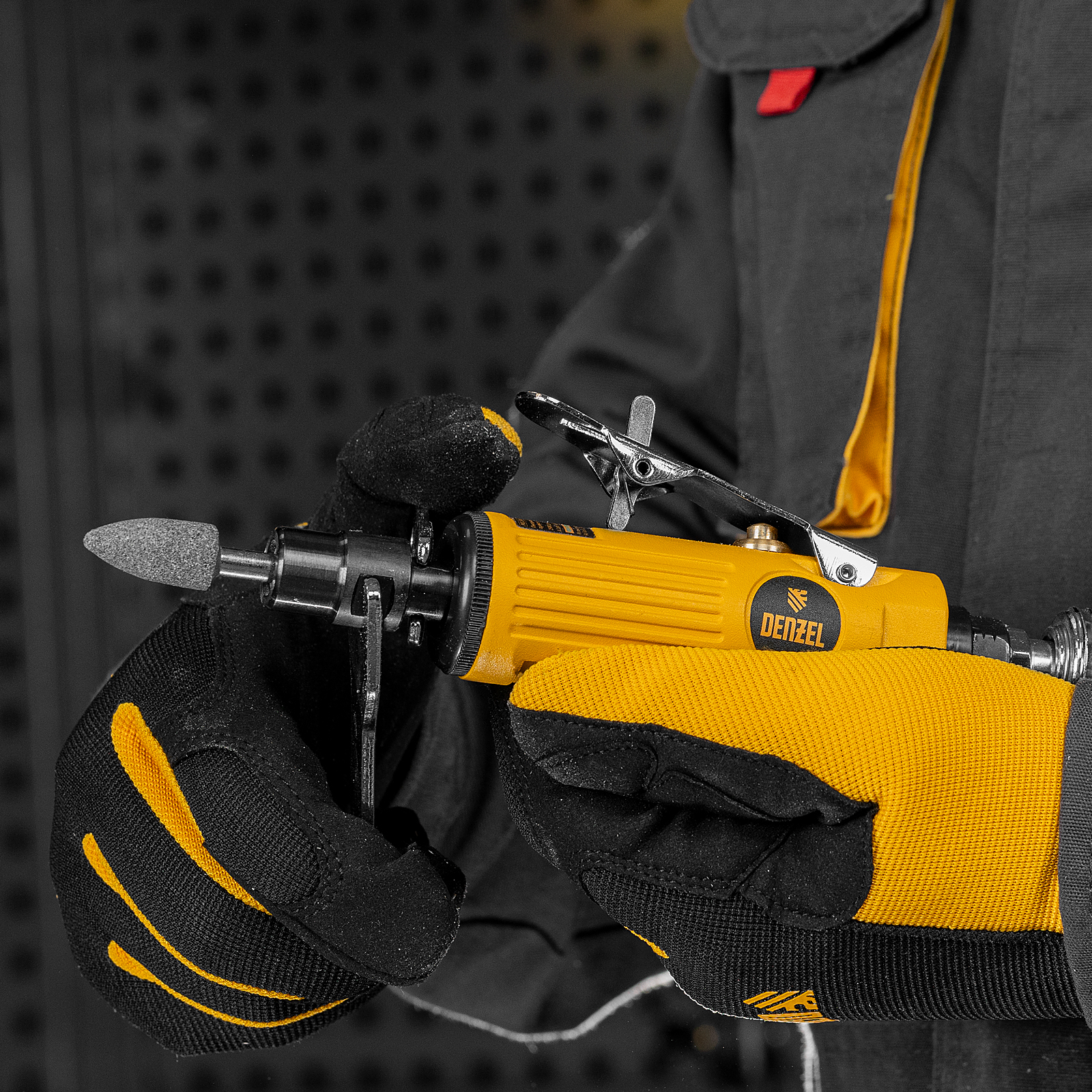 Прямая пневмошлифмашина Denzel PGS25000 57464 поставляется с 10 шлифовальными камнями и цангами 3 и 6 мм, потребляет 113 л сжатого воздуха в минуту и обеспечивает скорость вращения оснастки 25000 об/мин. Используется для обработки изделий из пластика, древесины и металла. Позволяет удалять заусенцы, зачищать сварные швы, снимать тонкий слой ржавчины или лакокрасочного покрытия на небольших участках, выполнять шлифовальные работы. Инструмент оптимален для работы в условиях ограниченного пространства, подходит для профессионального и бытового использования.