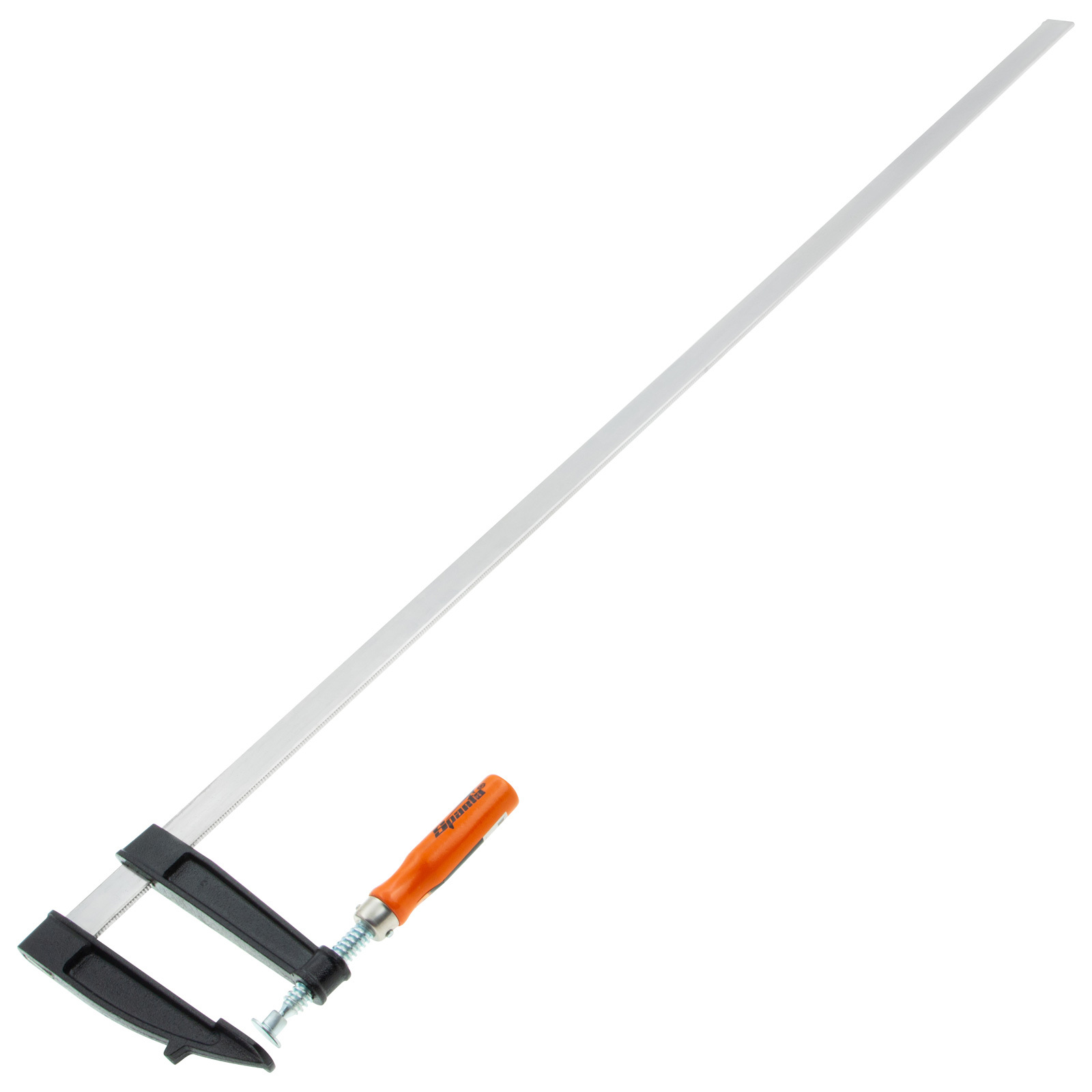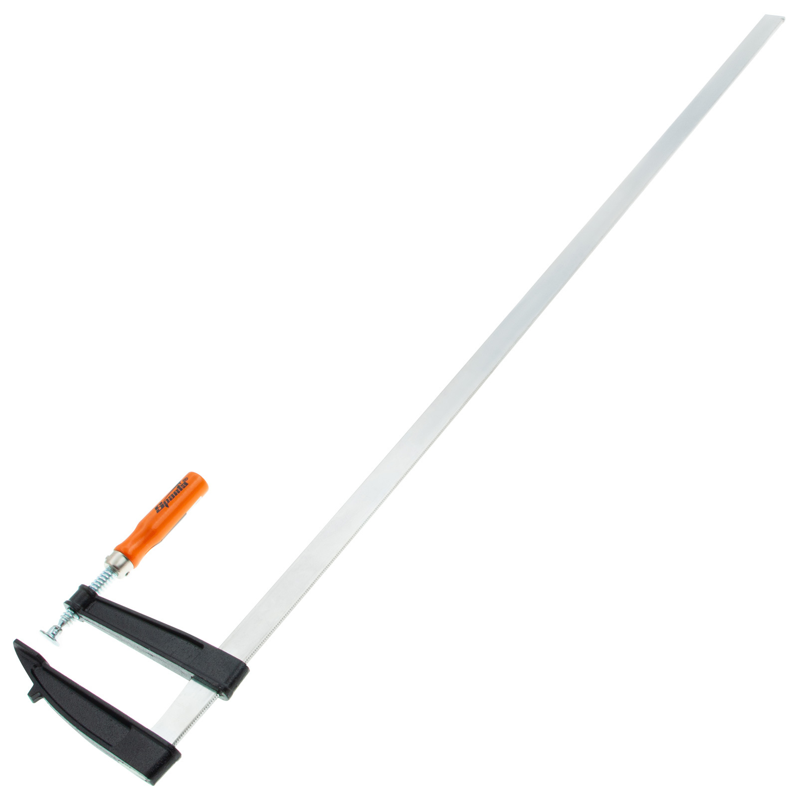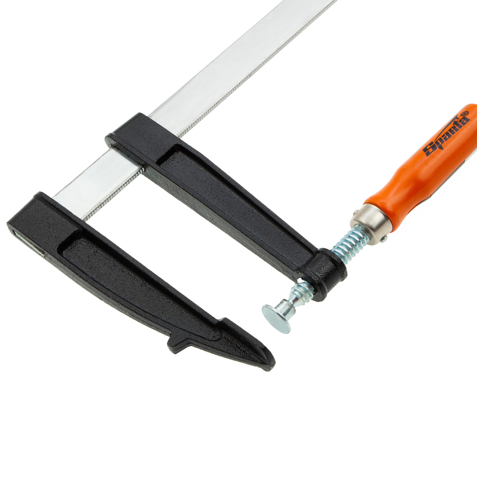 F-образная струбцина Sparta 204475, 1000 х 120 х 1050 мм, используется в столярном и слесарном деле и позволяет фиксировать заготовки из металла, древесины и других материалов для их соединения или обработки. Деталь помещают между губками, одна из которых подвижна и служит для регулировки величины захвата. Винтовой зажим позволяет прикладывать значительное усилие для надежной фиксации. Защитные накладки предотвращают повреждение детали. Элементы конструкции выдерживают высокую температуру, поэтому струбцина подходит для проведения сварочных работ, при этом пластиковые накладки необходимо снять.
