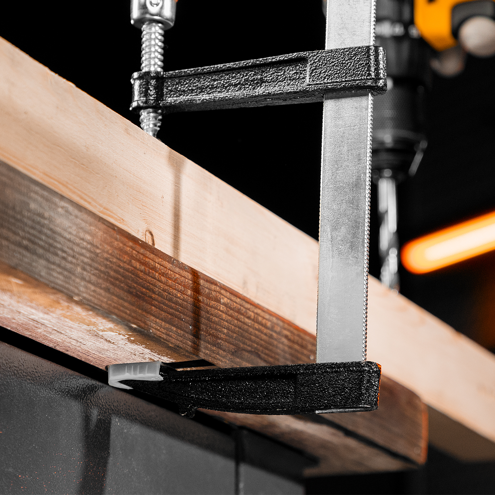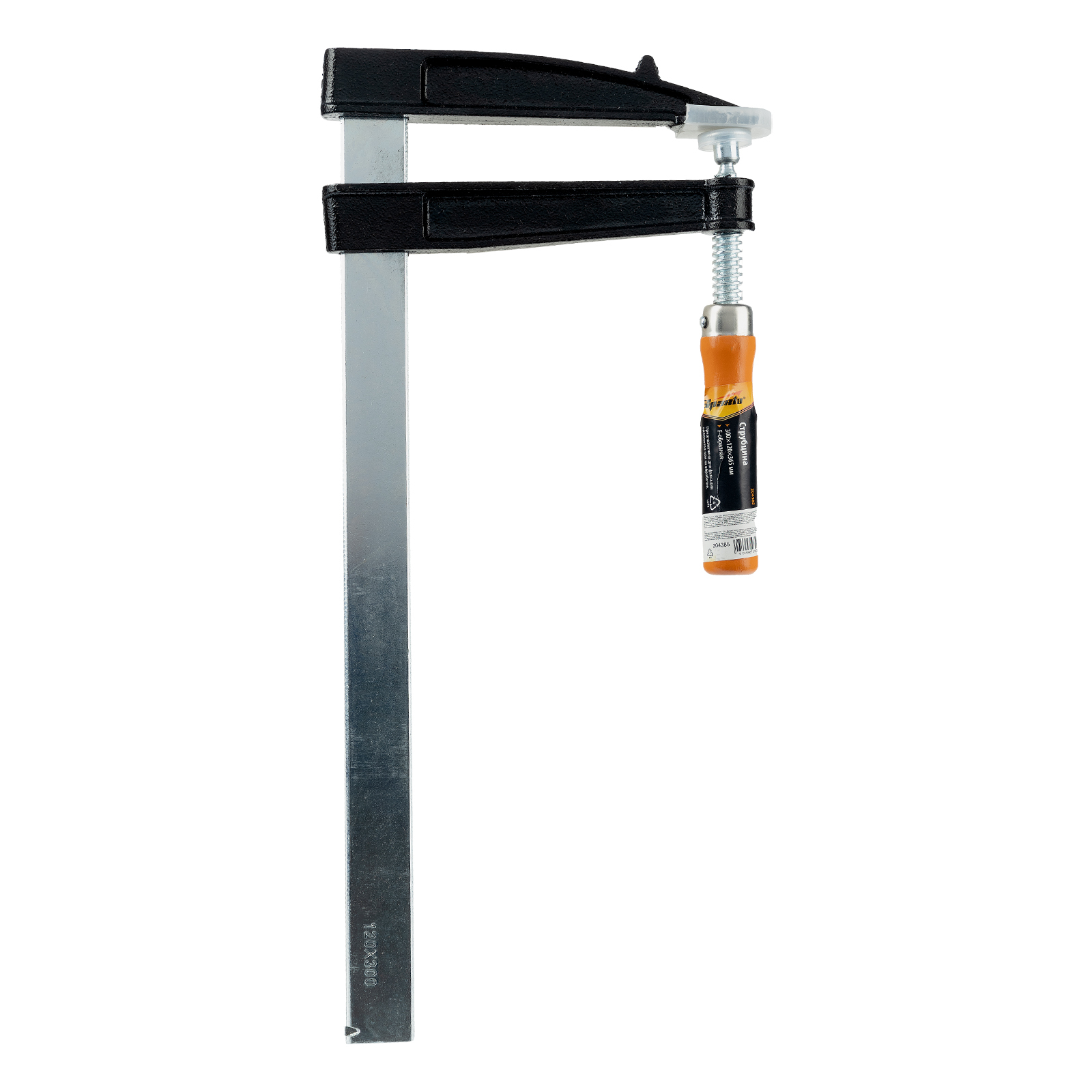 F-образная струбцина Sparta 204385 длиной 365 мм и величиной зажима 300 х 120 мм позволяет фиксировать заготовки из металла, древесины и других материалов для их соединения или обработки. Используется в столярном и слесарном деле. Деталь помещают между губками, одна из которых подвижна и служит для регулировки величины захвата. Винтовой зажим позволяет фиксировать заготовку со значительным усилием. Элементы конструкции выдерживают высокую температуру, поэтому струбцина подходит для проведения сварочных работ, при этом пластиковые накладки необходимо снять.