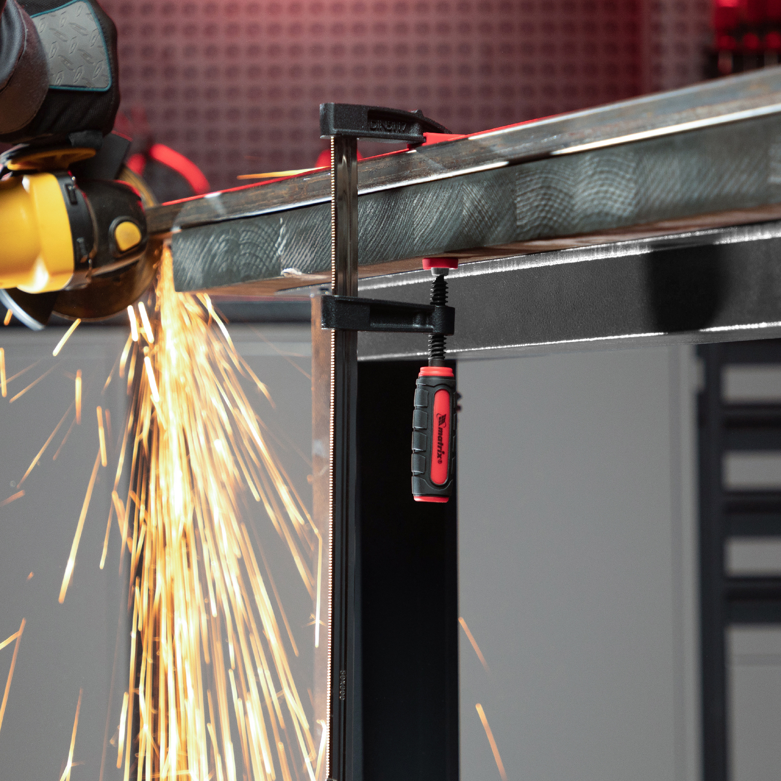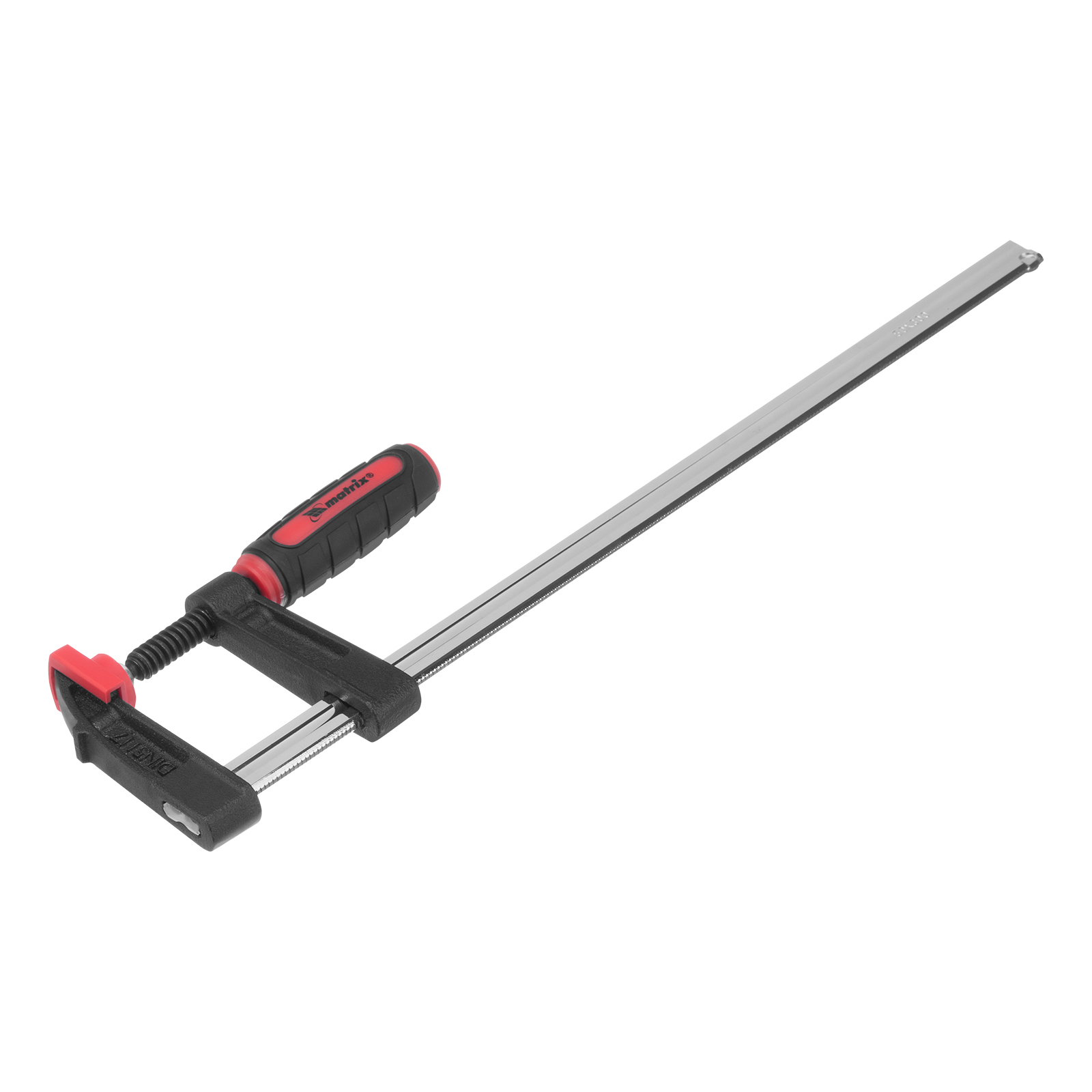 F-образная струбцина Matrix 20405 размером 300 х 50 х 370 мм используется для зажима металлических, деревянных и других заготовок для их последующей обработки или сборки. Представляет собой штангу, на которой установлено 2 кронштейна — неподвижный и подвижный. Деталь помещается между ними и прижимается к губкам при помощи винтового зажима с трапециевидной резьбой. Подвижный кронштейн позволяет регулировать величину захвата, которая может достигать 300 мм. Струбцину применяют для выполнения слесарных и столярных работ.