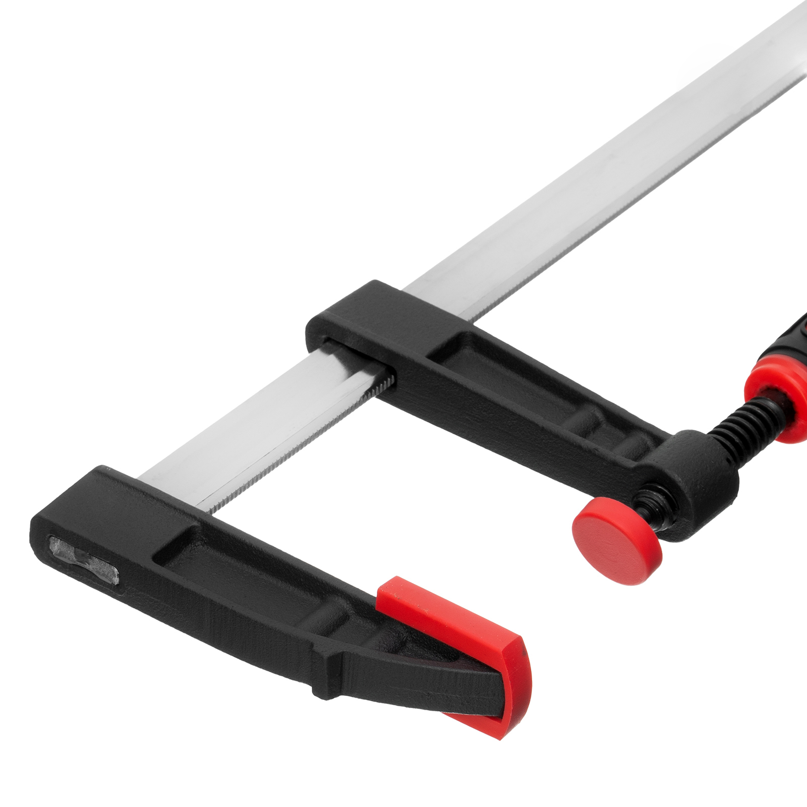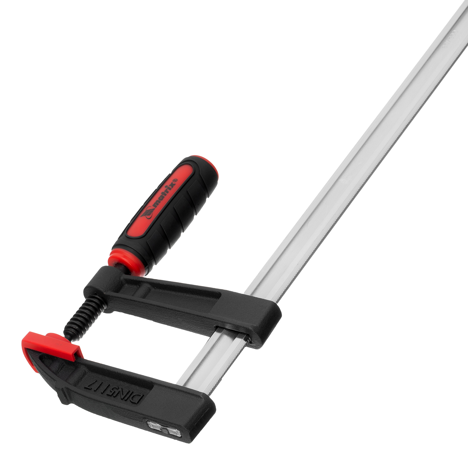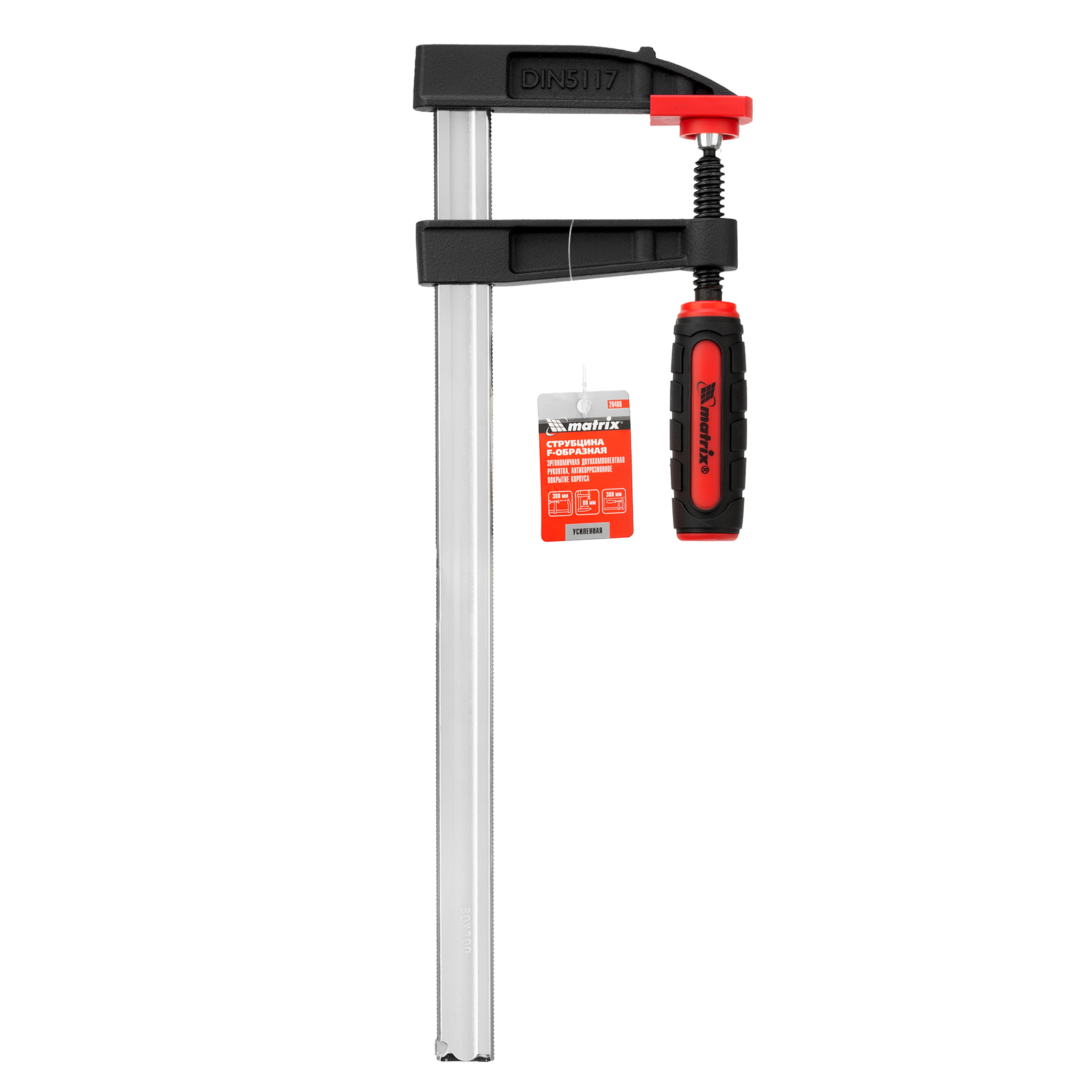 Усиленная F-образная струбцина Matrix 20406 размером 300 х 80 х 380 мм используется для зажима металлических, деревянных и других заготовок для их последующей обработки или сборки. Представляет собой штангу, на которой установлены 2 кронштейна — неподвижный и подвижный. Деталь помещается между ними и прижимается к губкам при помощи винтового зажима с трапециевидной резьбой. Величина захвата регулируется при помощи подвижного кронштейна и может достигать 300 мм. Струбцину используют для проведения слесарных и столярных работ. Металлическая конструкция выдерживает высокую температуру, поэтому инструмент пригодится для выполнения сварочных работ (перед началом необходимо снять пластиковые накладки с губок).