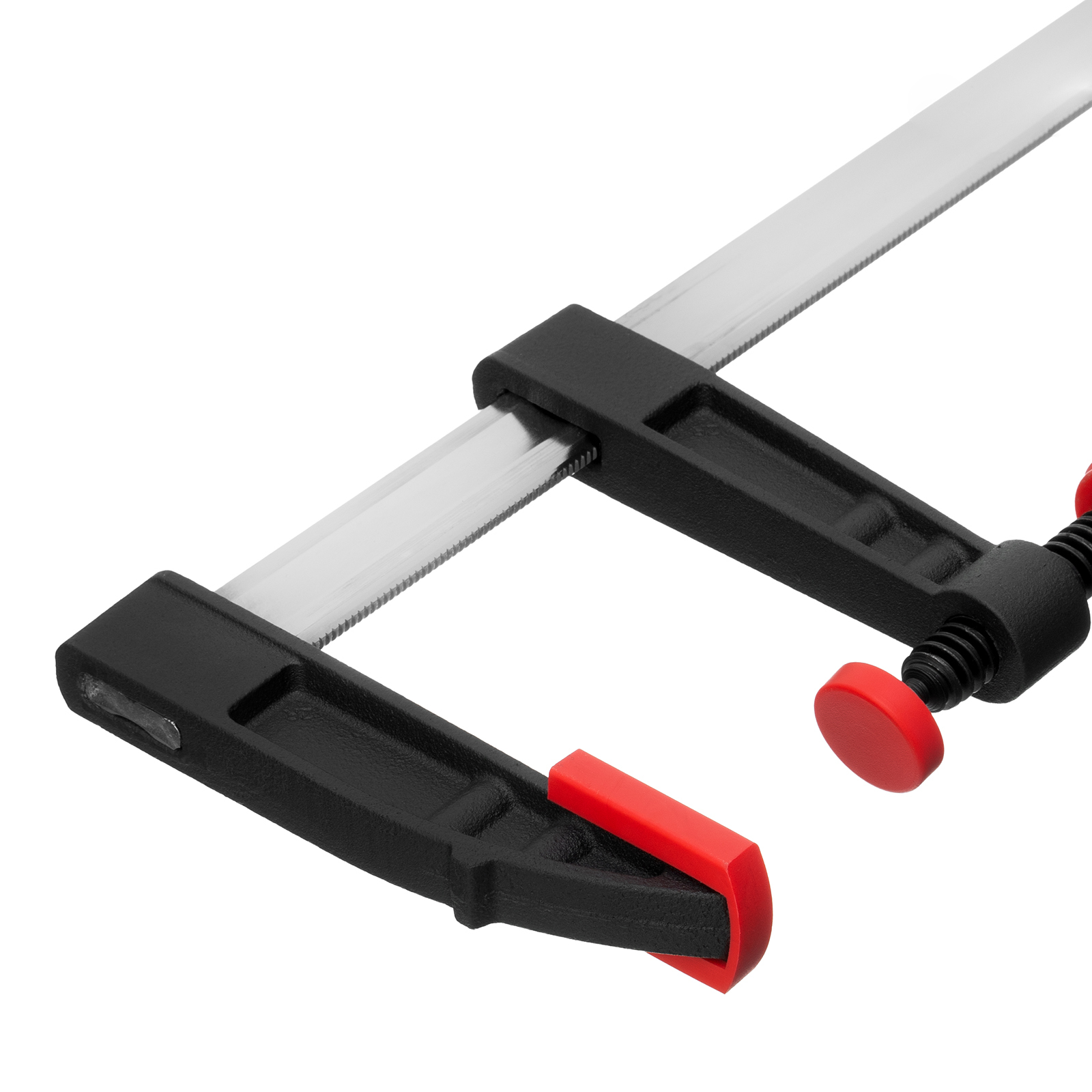 Усиленная F-образная струбцина Matrix 20409 размером 400 х 80 х 480 мм используется для зажима металлических, деревянных и других заготовок для их последующей обработки или сборки. Представляет собой штангу, на которой установлены 2 кронштейна — неподвижный и подвижный. Деталь помещается между ними и прижимается к губкам при помощи винтового зажима с трапециевидной резьбой. Величина захвата регулируется при помощи подвижного кронштейна и может достигать 400 мм. Струбцину используют для проведения слесарных и столярных работ. Металлическая конструкция выдерживает высокую температуру, поэтому инструмент пригодится для выполнения сварочных работ (перед началом необходимо снять пластиковые накладки с губок).