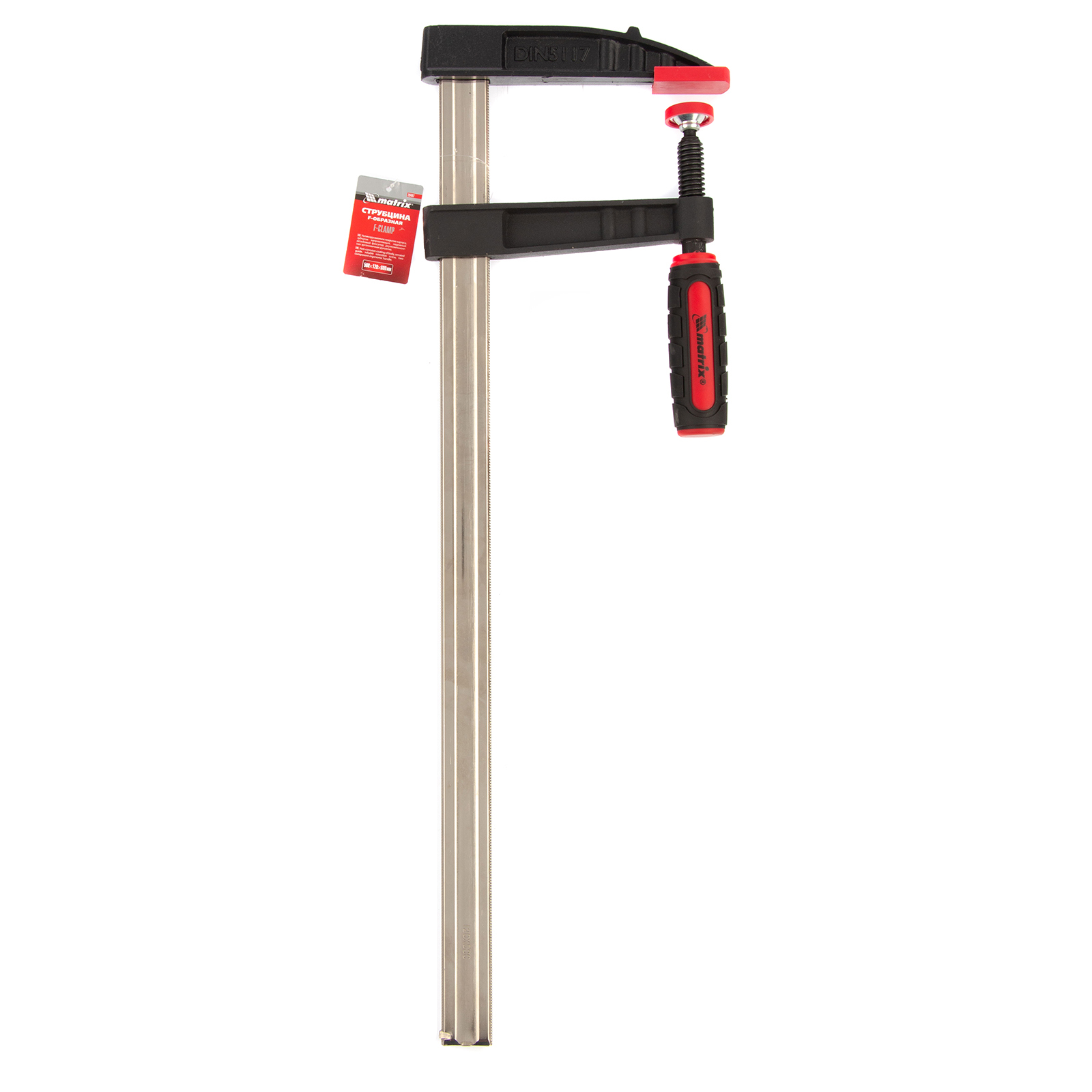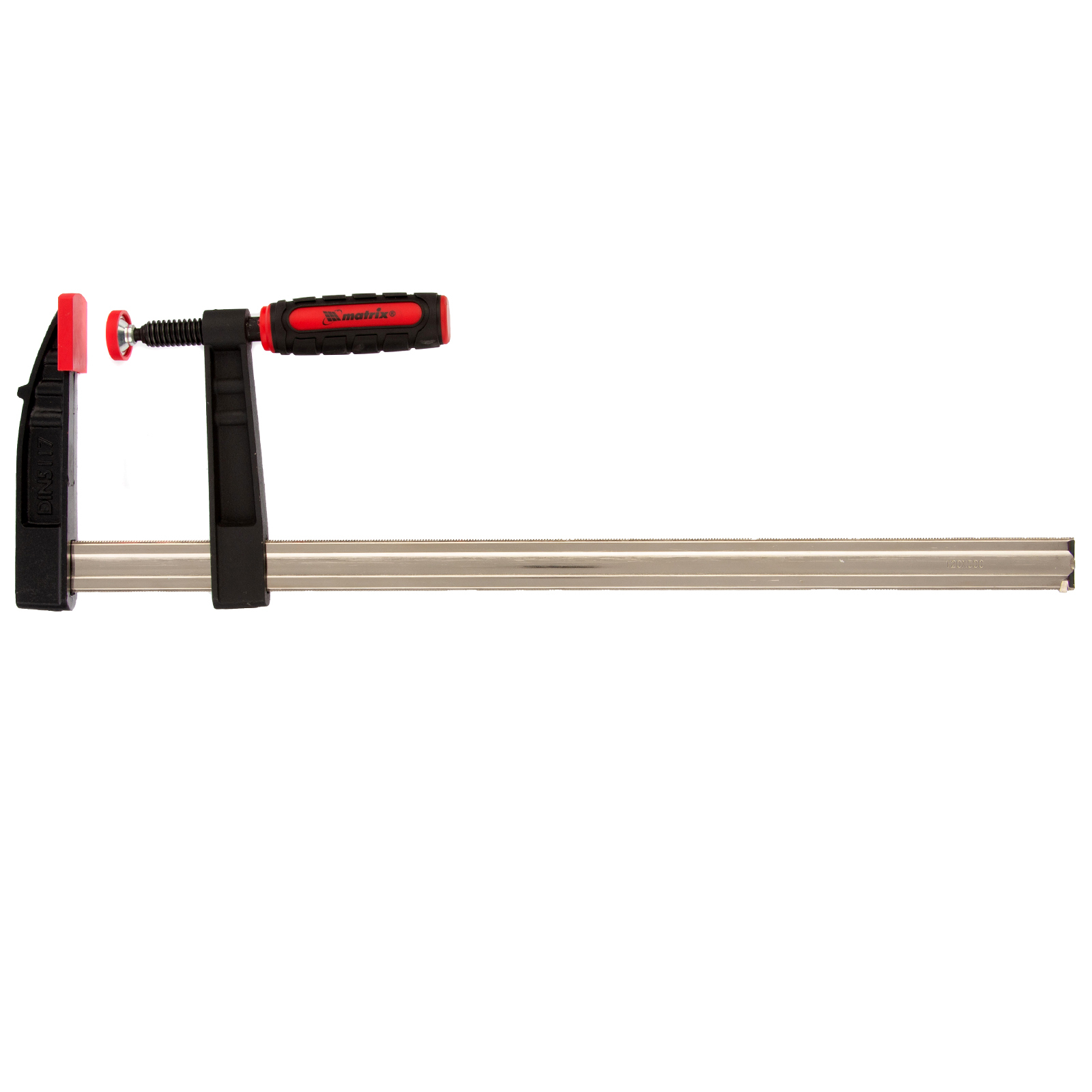 F-образная струбцина Matrix 20407 размером 500 х 120 х 600 мм используется для зажима металлических, деревянных и других заготовок для их последующей обработки или сборки. Представляет собой штангу, на которой установлено 2 кронштейна — неподвижный и подвижный. Деталь помещается между ними и прижимается к губкам при помощи винтового зажима с трапециевидной резьбой. Подвижный кронштейн позволяет регулировать величину захвата, которая может достигать 500 мм. Струбцину применяют для выполнения слесарных и столярных работ.