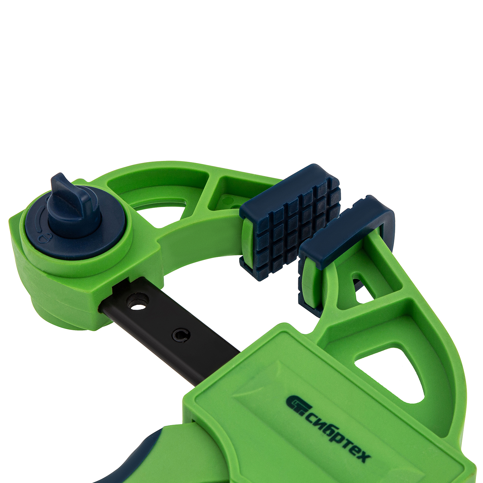 F-образная быстрозажимная струбцина Сибртех 20567 длиной 820 мм, с шириной и глубиной зажима 600 и 70 мм соответственно, в пластиковом корпусе, с фиксатором и двухкомпонентной рукояткой, позволяет зажимать заготовки для их дальнейшей обработки или сборки. Помогает решать множество задач благодаря оптимальной глубине зажима. Пластинчатый механизм пошагово перемещает подвижную губку вдоль направляющей до достижения максимально плотного захвата детали. Фиксатор препятствует движению губки в обратную сторону. Струбцина пригодится в столярной мастерской, а также будет полезна в быту.