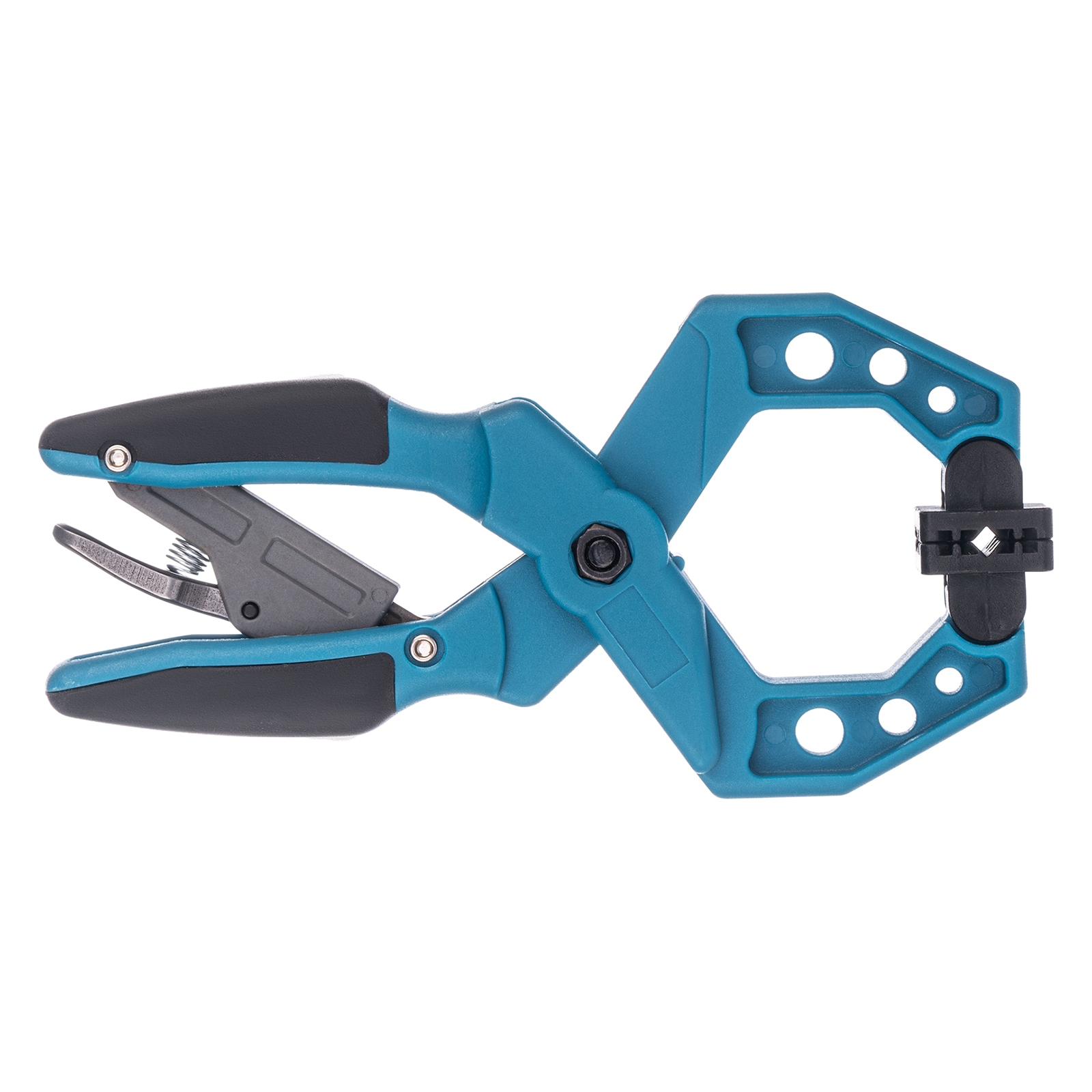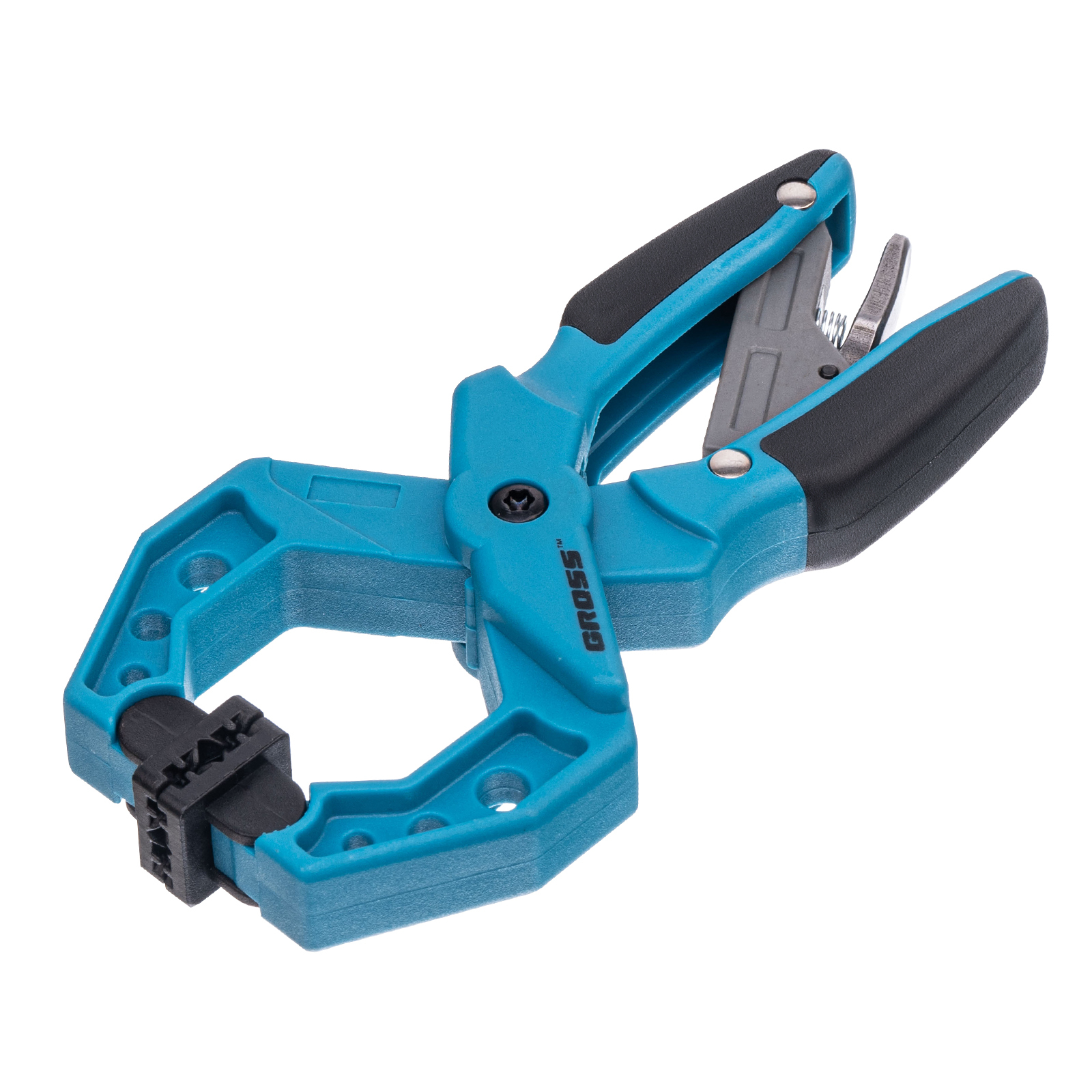 Клещеобразная струбцина Gross 20801 в пластиковом корпусе, с храповым механизмом жесткой фиксации, используется для фиксирования деталей толщиной 1-1/2 дюйма / 38 мм при их скреплении и обработке. Позволяет зажимать и удерживать заготовки из древесины и других материалов. Благодаря надежному металлическому храповому механизму губки жестко фиксируют предметы, что отличает данную модель от струбцин прищепочного типа на пружинах. Инструмент предназначен для профессионального использования.