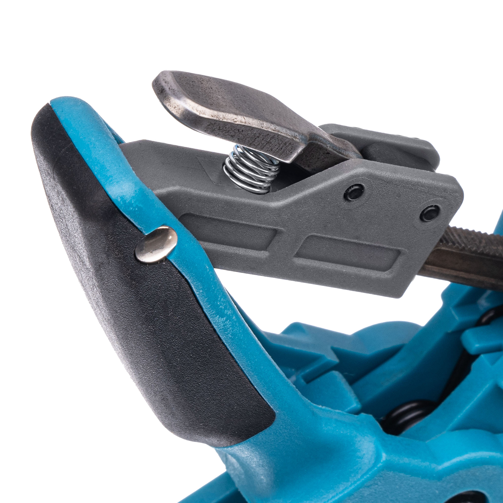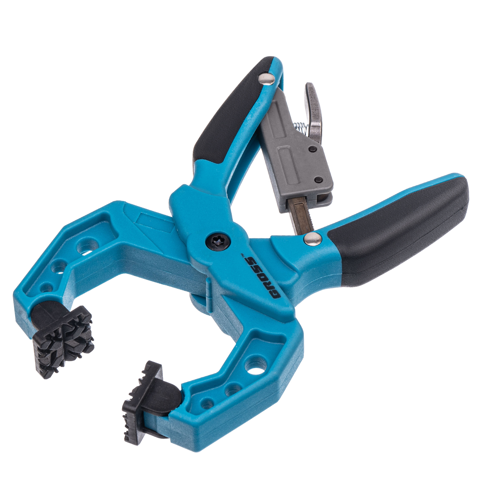 - Курковый фиксатор обеспечивает моментальное раскрытие струбцины, что облегчает работу с ней.