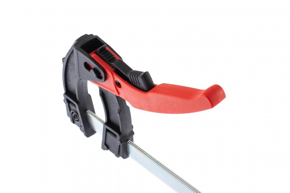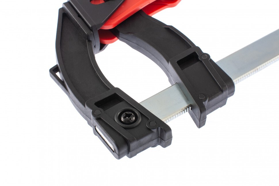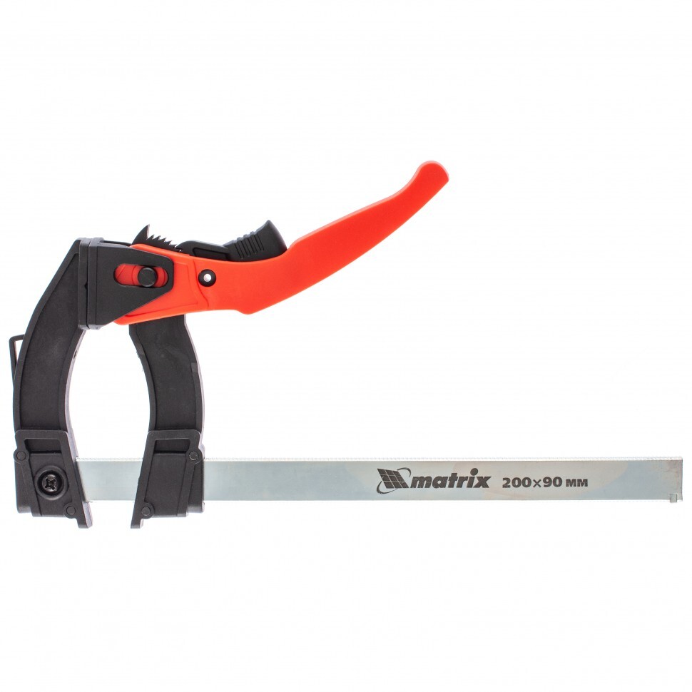 Реечная быстрозажимная струбцина Matrix 20736, 200 х 90 х 290 мм, штанга 5 х 20 мм, с пластиковым корпусом и рычажным храповым механизмом, используется для зажимания и удержания заготовок с целью их скрепления или последующей обработки. Рычажно-храповый механизм позволяет надежно зафиксировать деталь, пошагово перемещая подвижную губку вдоль штанги. Струбцина пригодится при выполнении столярных работ в мастерской, дома или на даче.