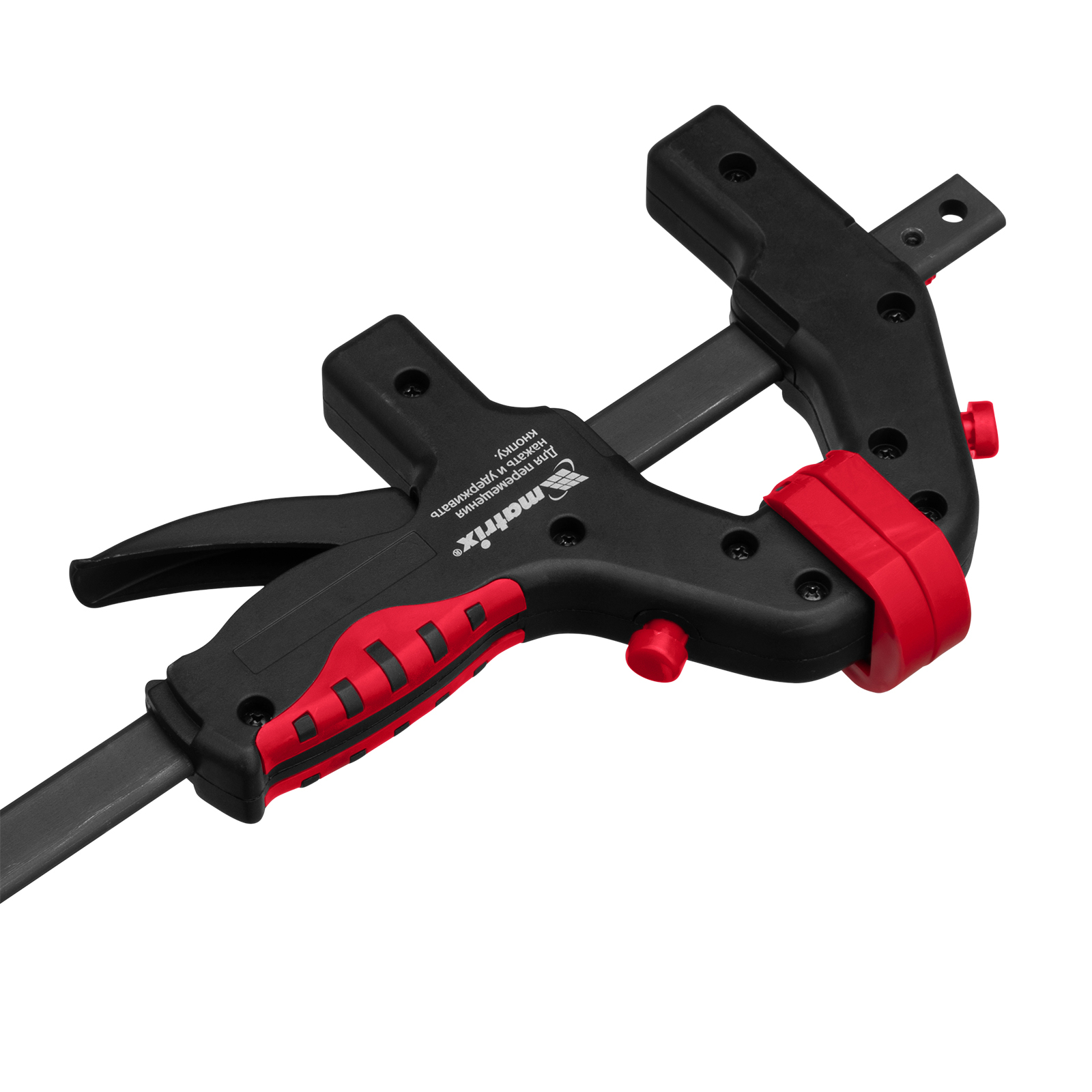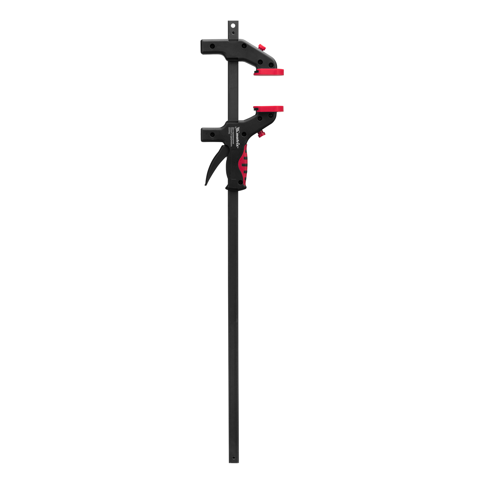 Универсальная F-образная быстрозажимная струбцина Matrix 20546 размером 600 х 915 х 90 мм, в пластиковом корпусе, используется в столярном деле. Позволяет быстро фиксировать заготовки с целью их соединения или обработки — склеивания, сверления, шлифовки, пиления и других видов работ. Подвижная губка перемещается вдоль штанги при помощи пластинчатого механизма, а фиксатор препятствует разжиманию струбцины. Массивная конструкция обеспечивает надежность инструмента.