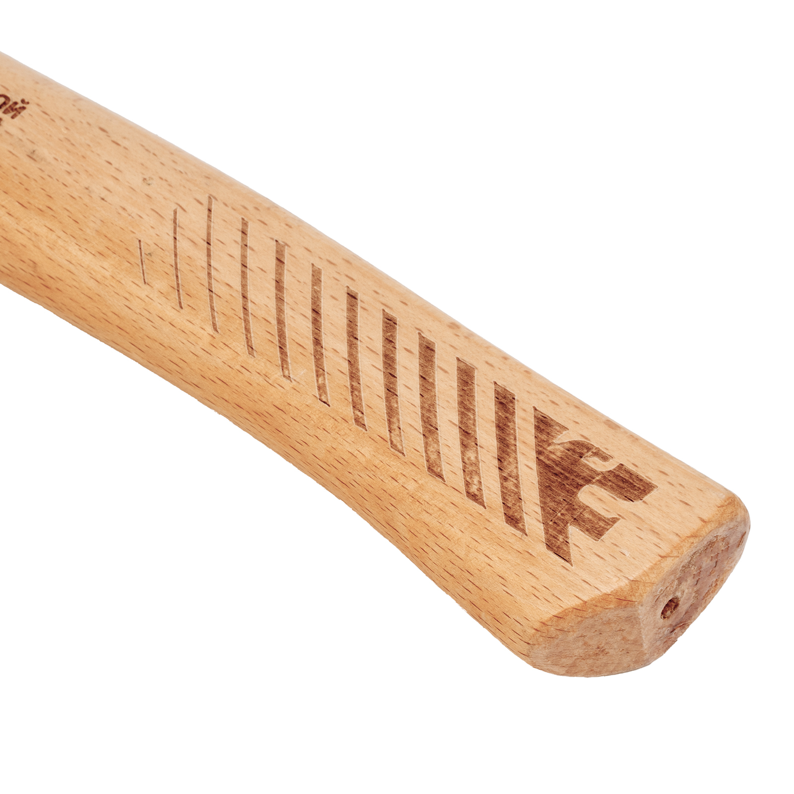 - Прочность — топорище изготовлено из бука и покрыто защитным лаком.