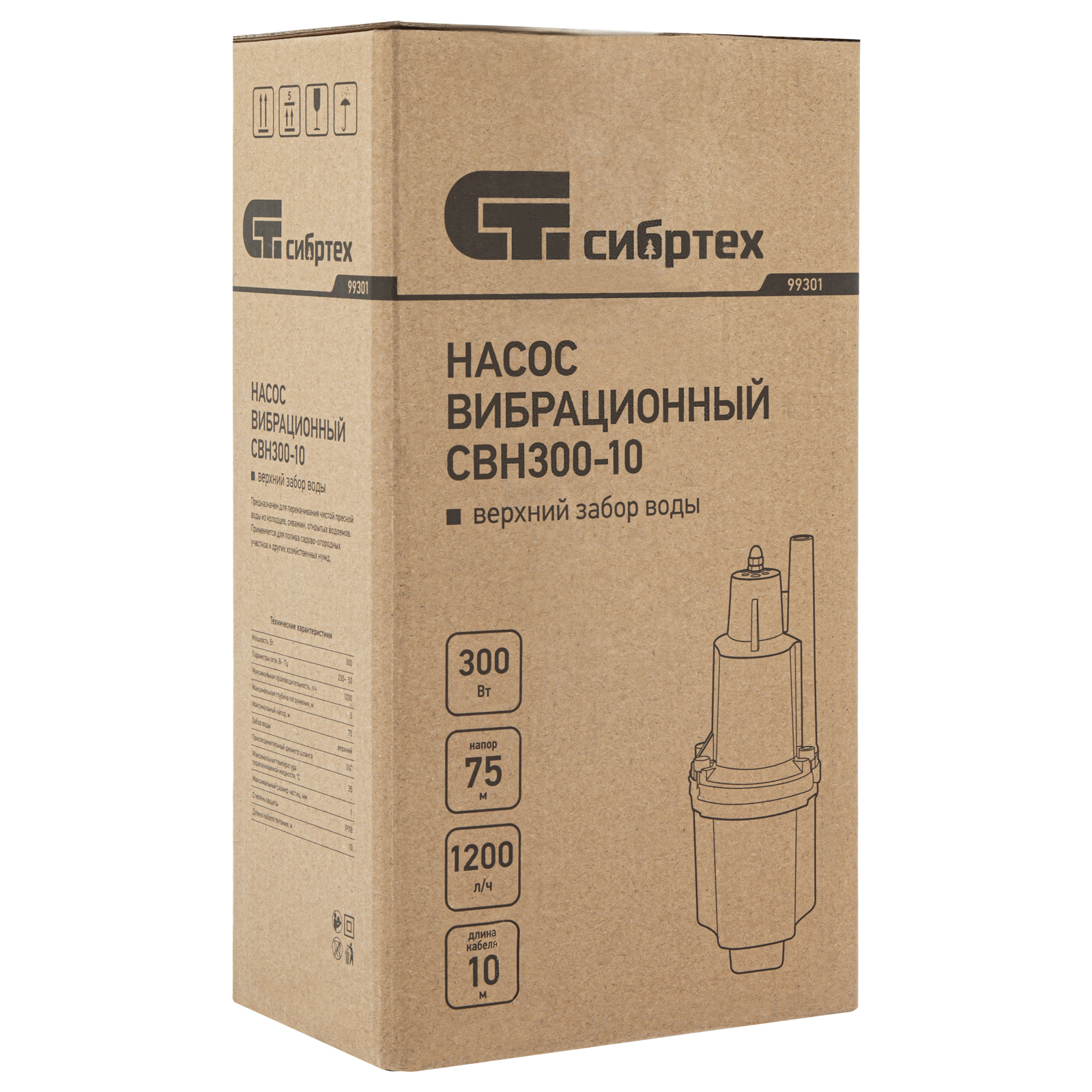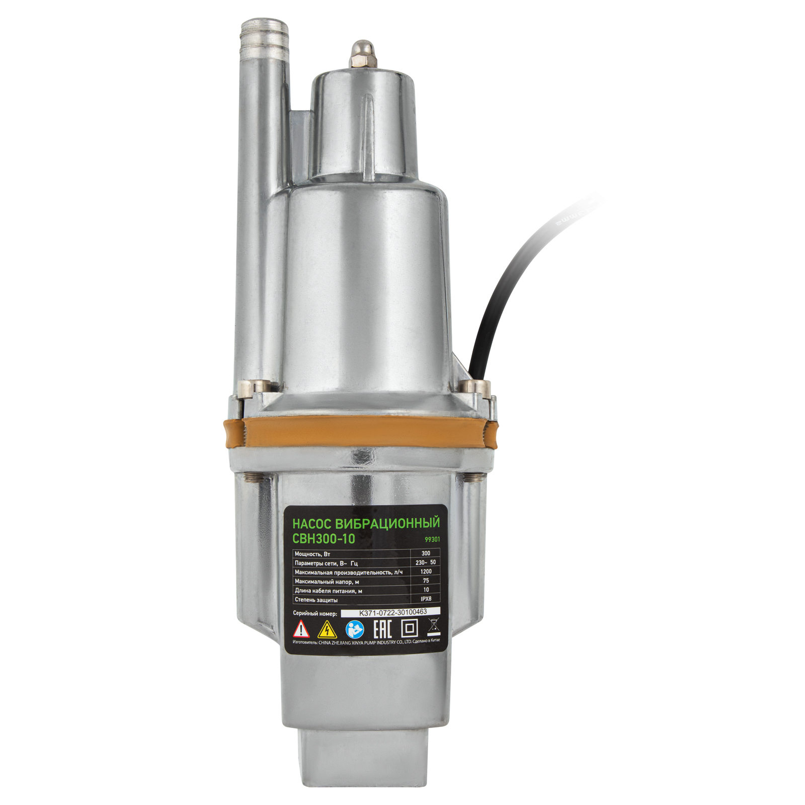 Вибрационный насос Сибртех СВН300-10 99301 мощностью 300 Вт, с системой верхнего забора жидкости и кабелем длиной 10 м, обеспечивает напор до 75 м и предназначен для подачи чистой воды со скоростью 1200 л/ч из колодцев, резервуаров, емкостей и водоемов с глубины до 5 м. Его можно использовать в системах полива и водоснабжения на даче. Насос выдает стабильное рабочее давление 7,5 бар и может обеспечивать несколько точек водоразбора, например, на кухне и в душевой кабине.