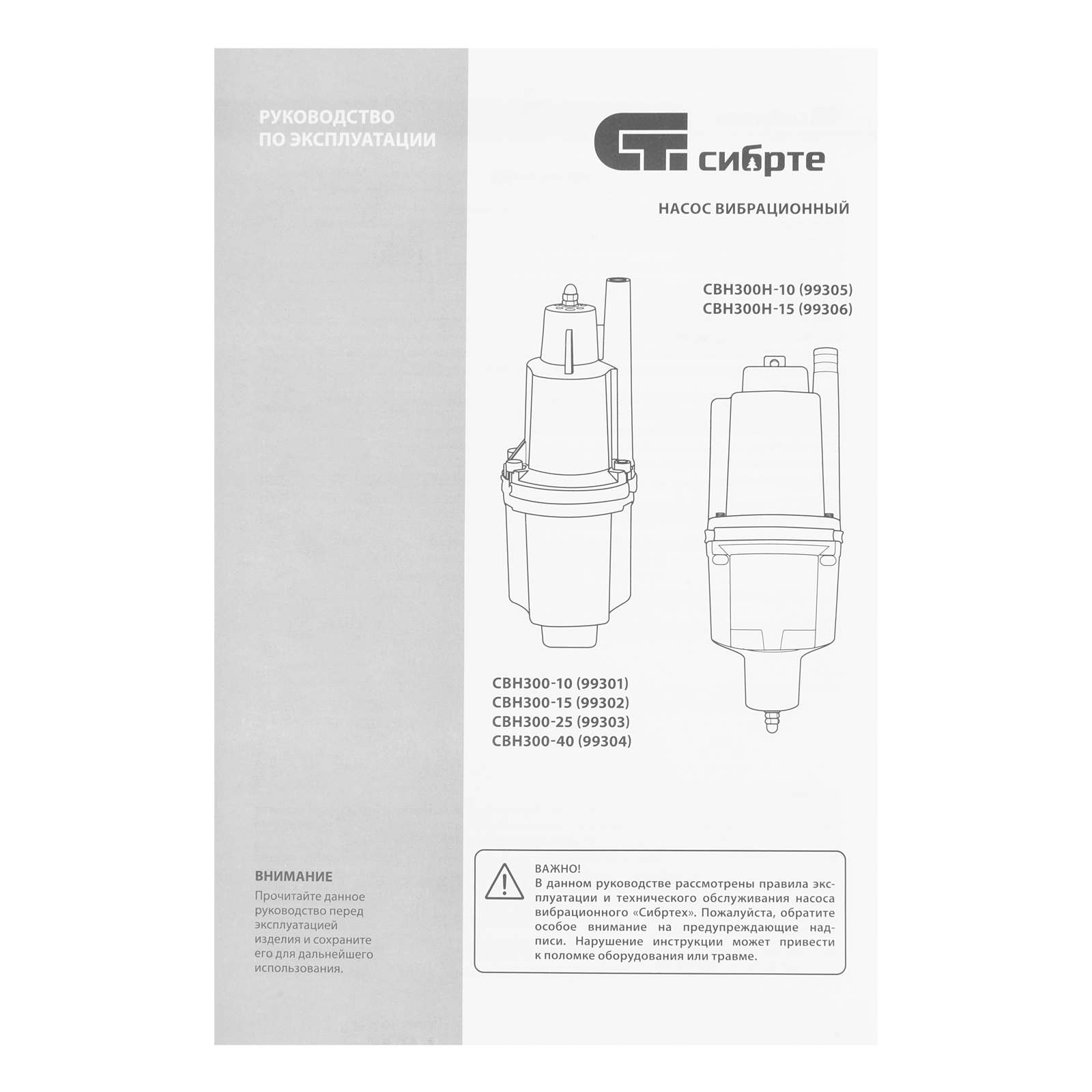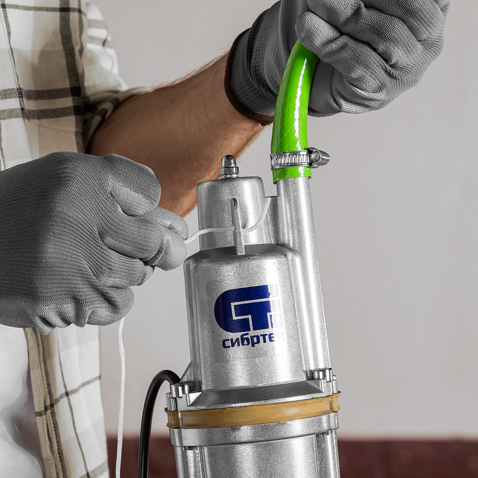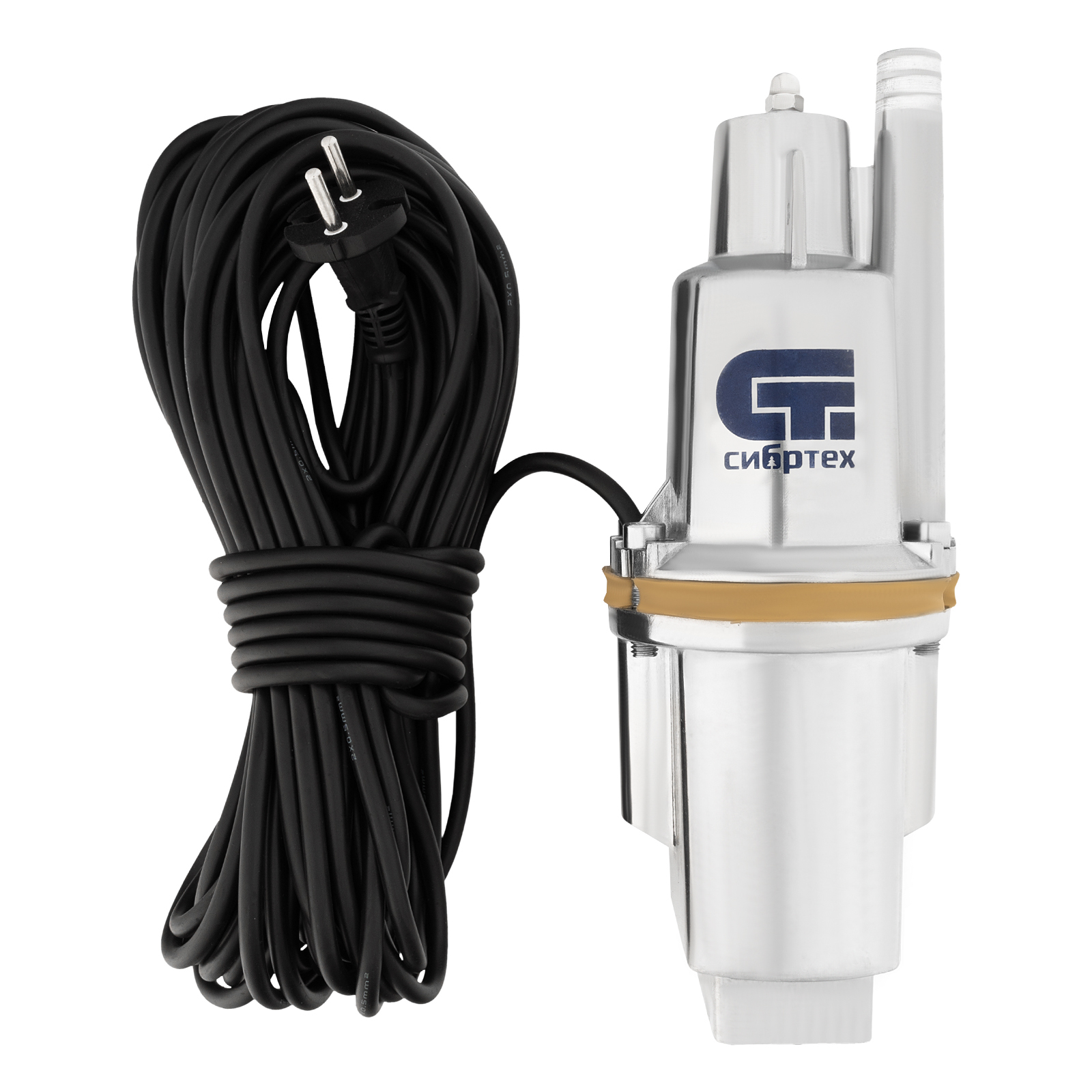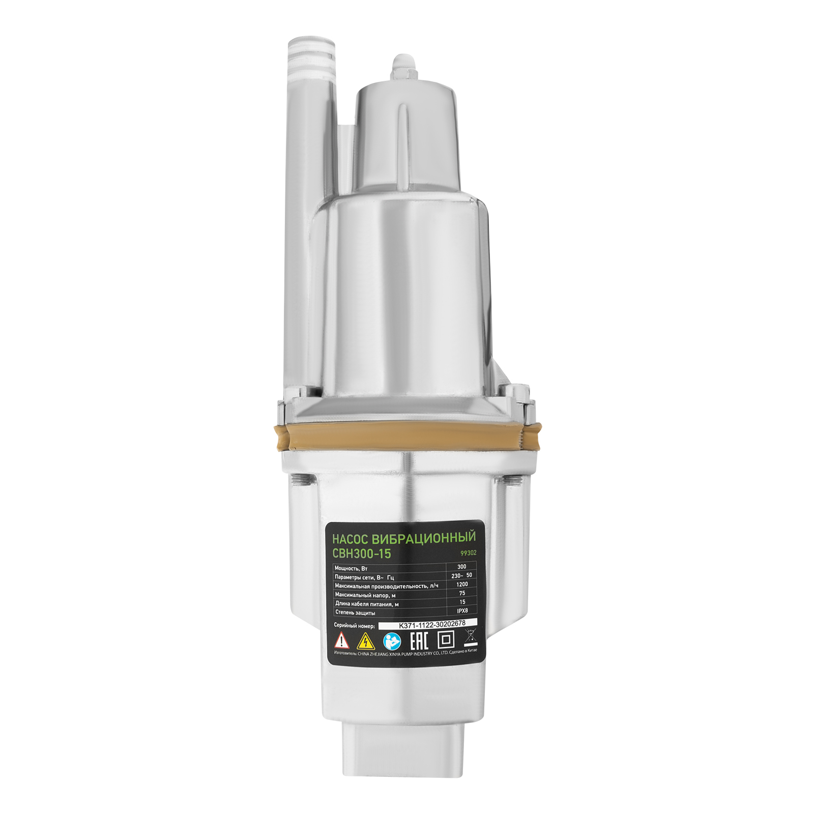 Вибрационный насос Сибртех СВН300-15 99302 мощностью 300 Вт, с кабелем длиной 15 м, способен поднимать чистую воду с глубины до 5 м из колодцев, резервуаров и водоемов со скоростью 1200 л/ч на высоту до 75 м. Используется для организации систем орошения и водоснабжения на даче, также с его помощью можно производить осушение подвалов, погребов, цокольных этажей. Напора и рабочего давления до 7,5 бар достаточно для подачи воды на 2-3 этаж.